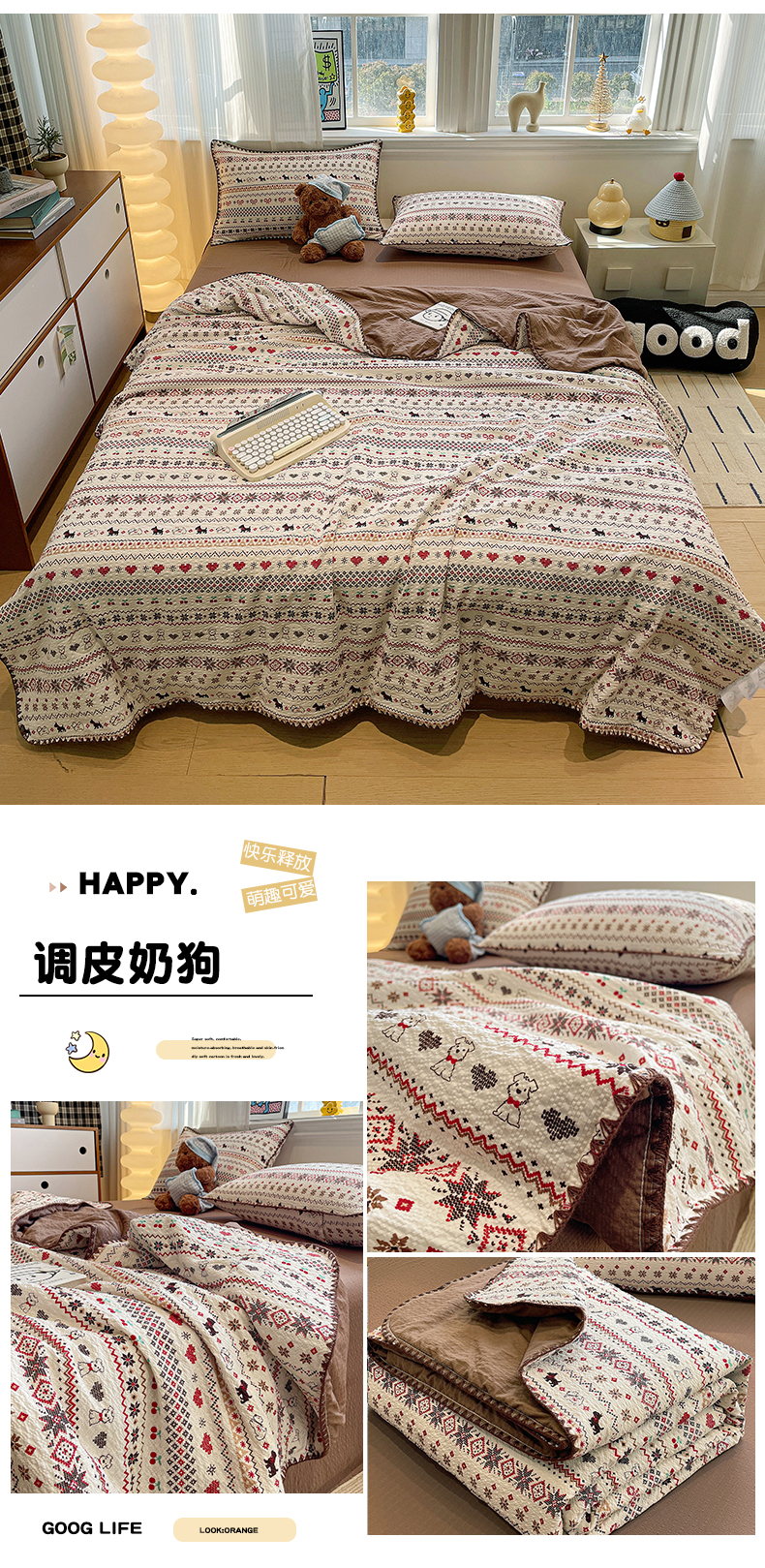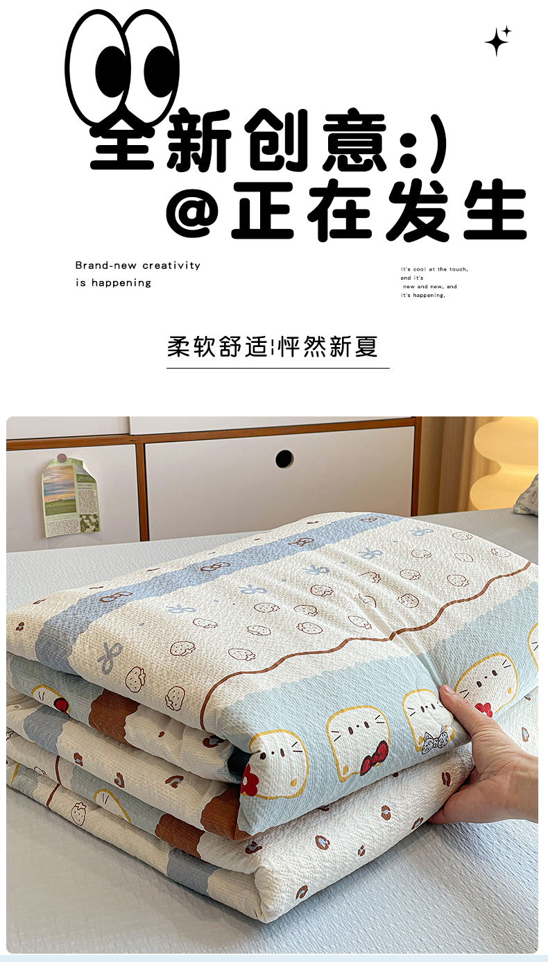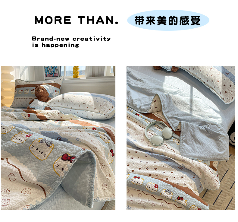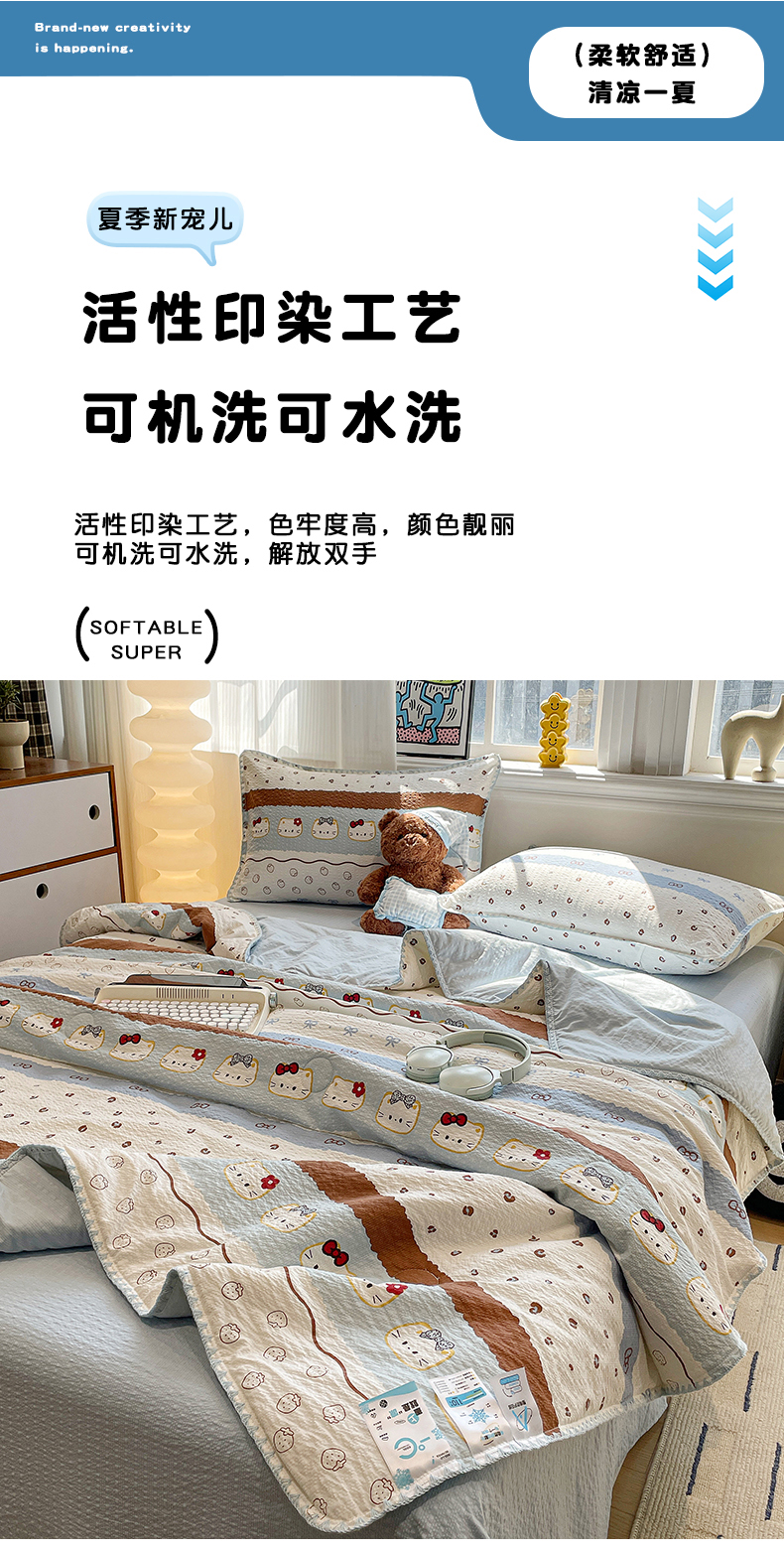 当前位置: 91家纺网 > 商品网购 > 床品套件 > 四件套 > 夏被四件套 > 奈颜 2026新款费尔岛云柔泡芙纱A类贝壳边夏被四件套-提供买家秀 可可小猫
