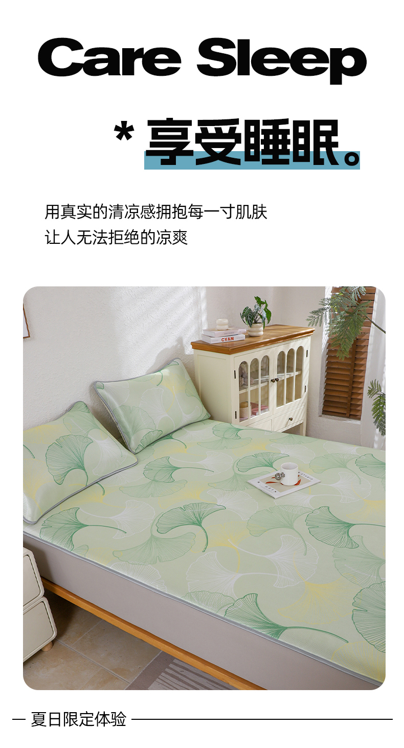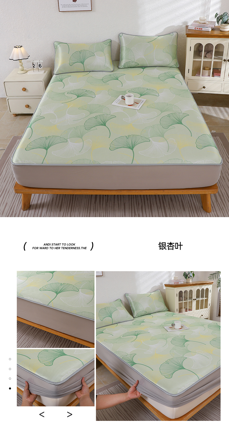 小萌虎 2026新款碳光冰丝凉席床笠款拍法二 银杏叶