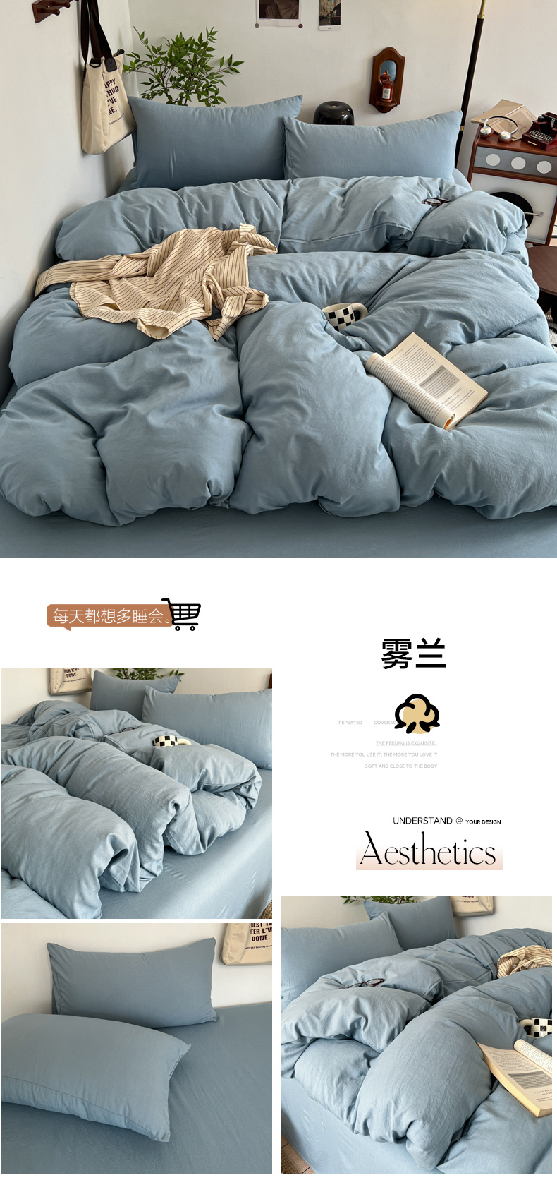 当前位置: 91家纺网 > 商品网购 > 床品套件 > 四件套 > 化纤普通四件套 > 梦嘉居 2026新款亲肤纯色AB版水洗皱皱棉四件套学生宿舍床单床笠三件套 雾兰