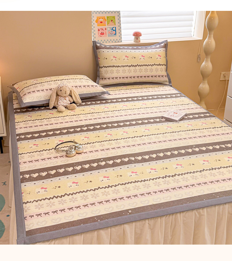 (总)沐慕 2026新款小清新凉感丝乳胶凉席三件套,爱心小兔,花花粉兔,萌萌鸭,萌宠礼物,豹纹小兔,萝莉猫,腊肠狗,粉格帽宠,三小只,森系兔,碎花小猫,糖果甜梦园,天使星星人,晚安拼格猫,樱桃萌猫,郁金香,云朵小熊