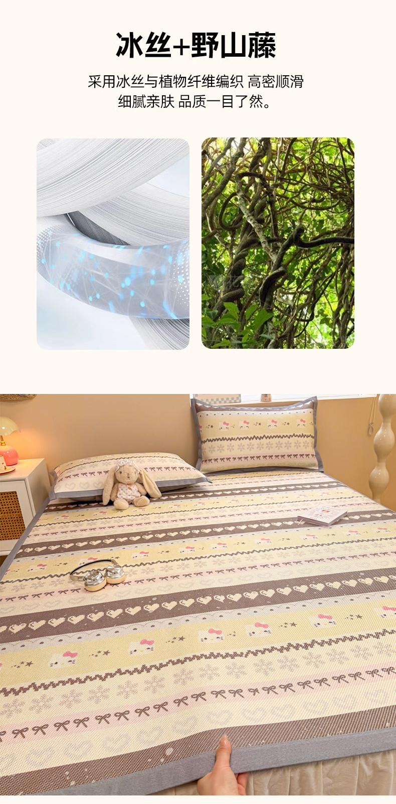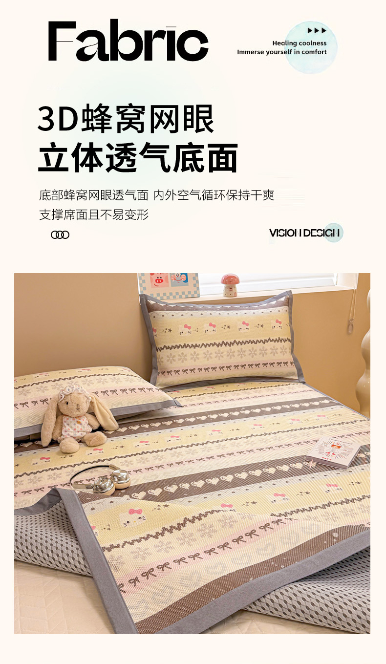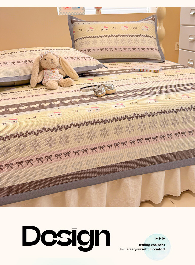 商品名称:沐慕 2026新款高克重600D冰丝印花冰藤席 冰藤-可爱巴拉