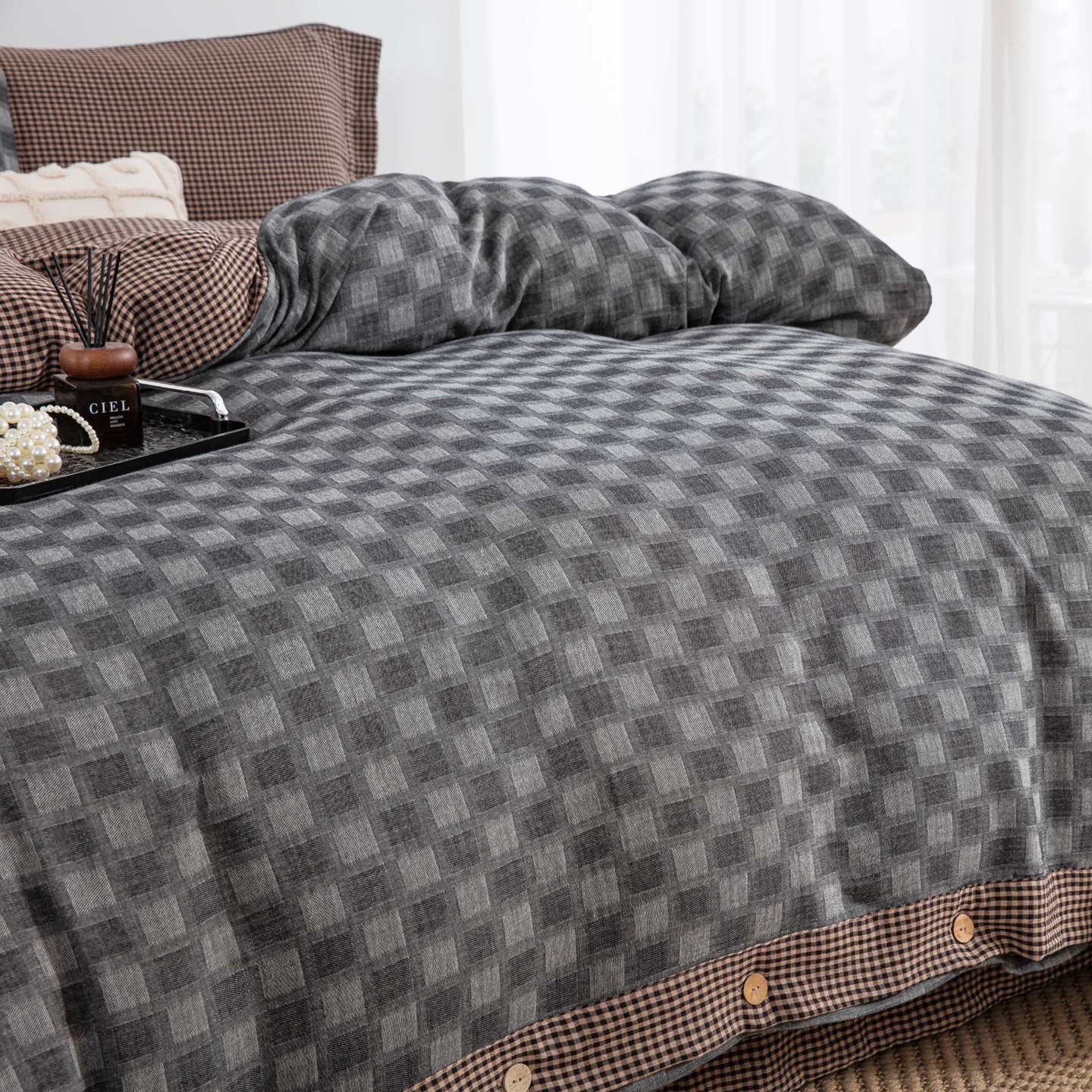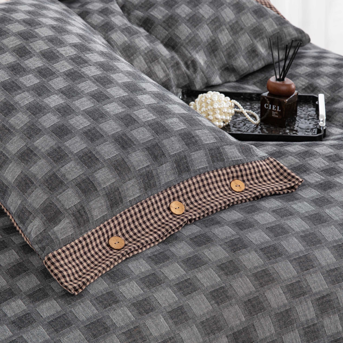 (总)仰望棉麻双层纱供应链 2026新款兰亭格序色织棉麻纽扣款四件套,兰亭格序
