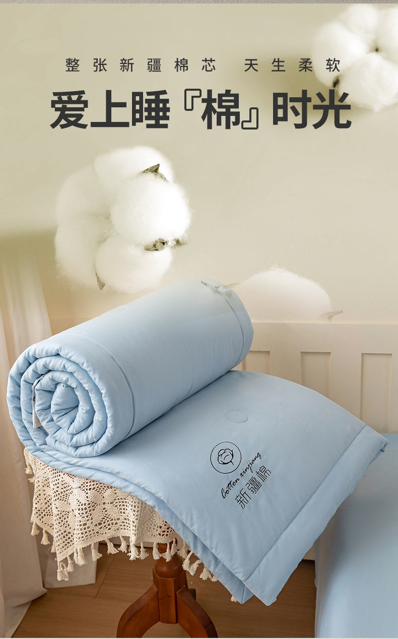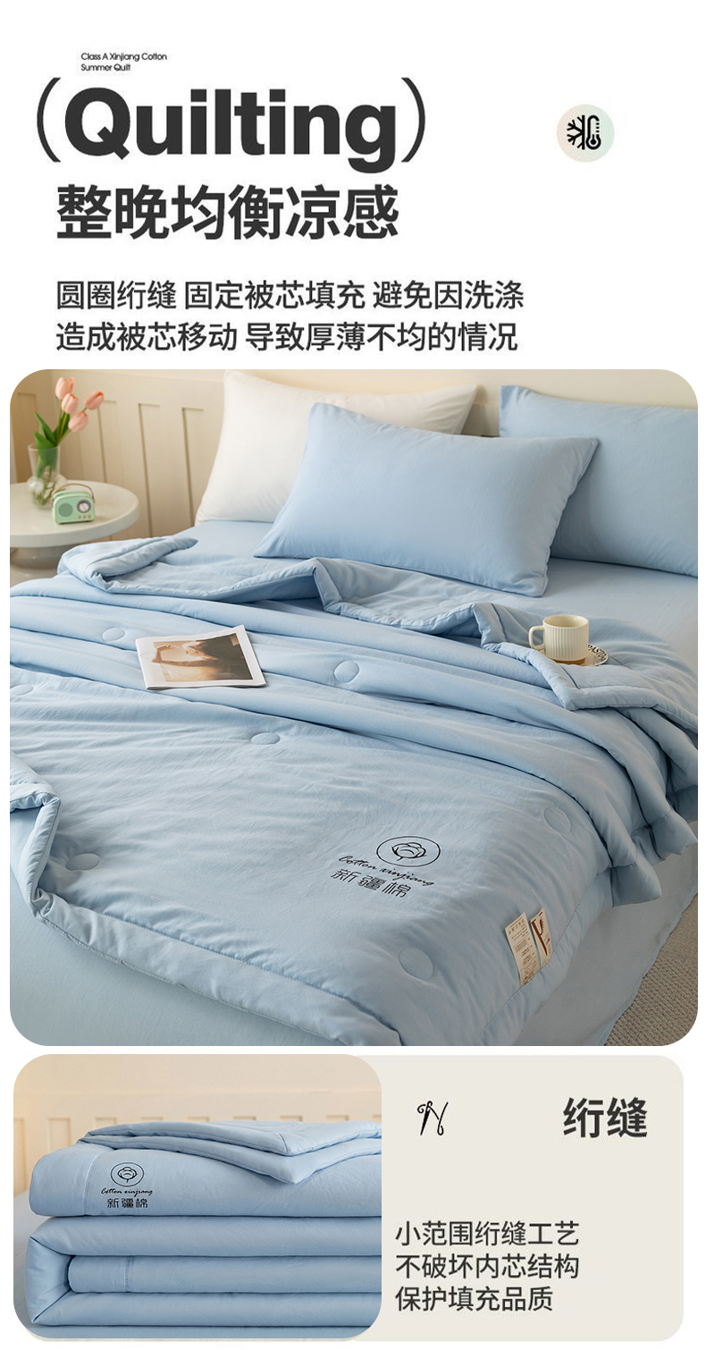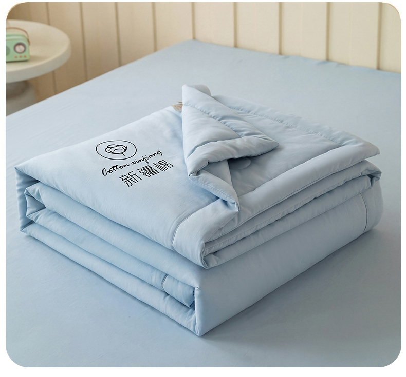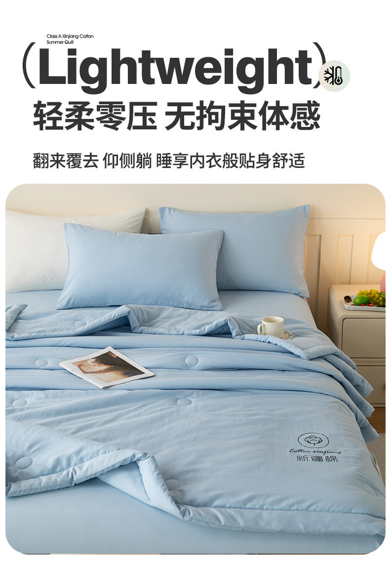 商品名称:安琪家纺 2026春夏新款A类新疆棉花纯色撞色双拼夏被夏凉被空调被 纯色-天蓝