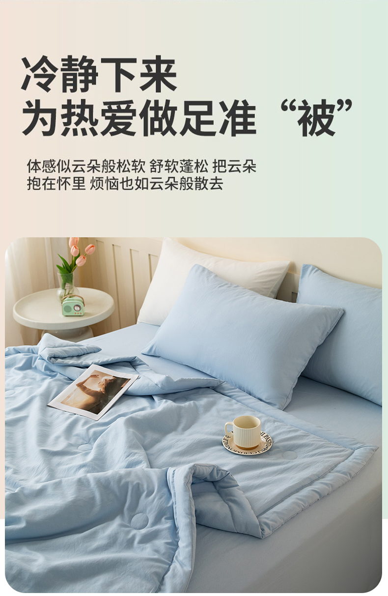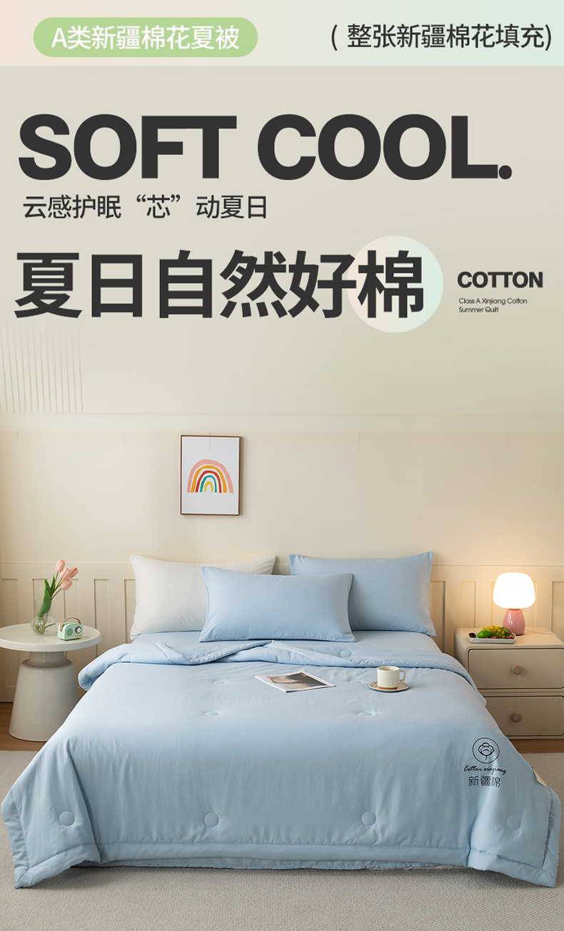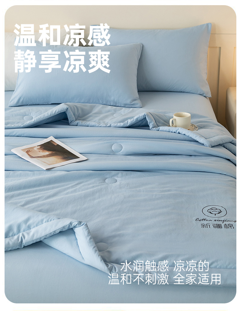 商品名称:安琪家纺 2026春夏新款A类新疆棉花纯色撞色双拼夏被夏凉被空调被 纯色-天蓝