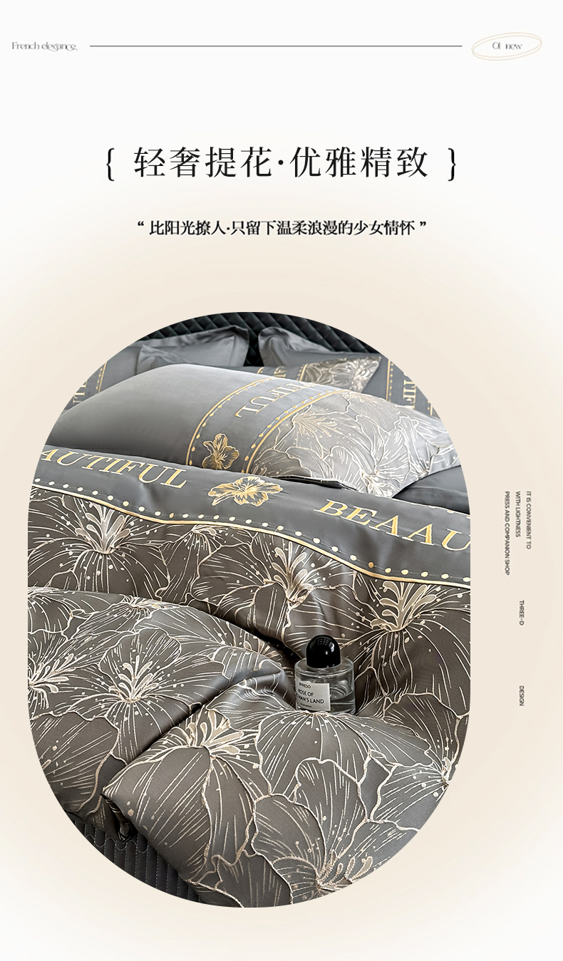 当前位置: 91家纺网 > 商品网购 > 床品套件 > 四件套 > 其它四件套 > 首尔家纺 2026新款金丝立体浮雕提花水洗真丝天丝四件套 蝴蝶结-深灰