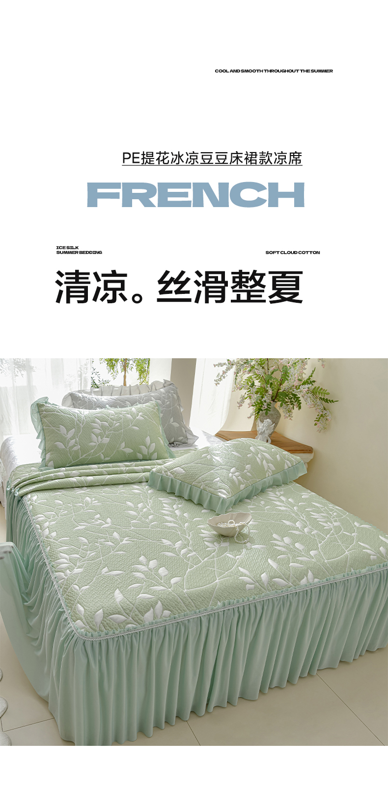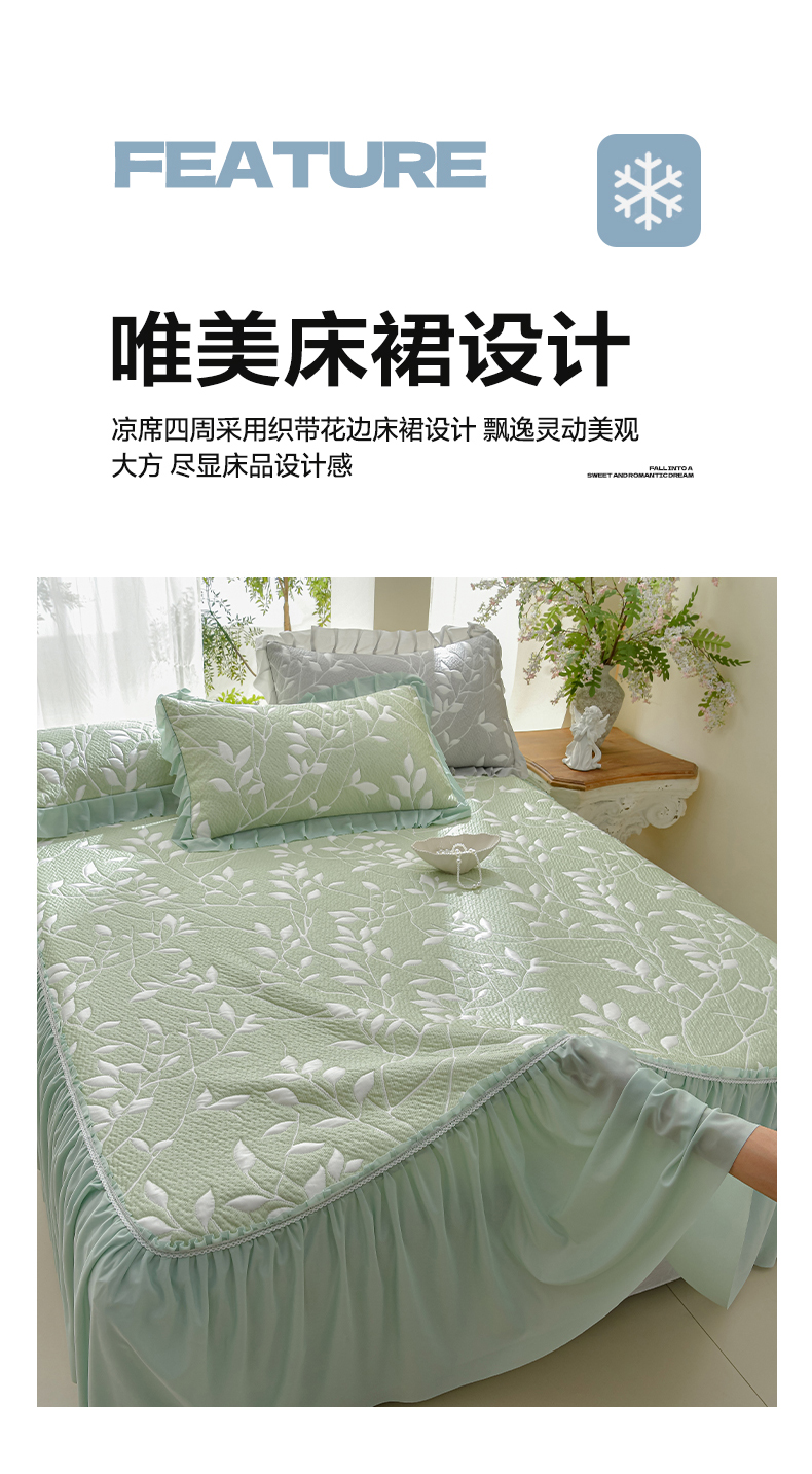 (总)绘萱家居 2026爆款冰凉豆豆凉席三件套床裙款冰丝软席子,叶影漫纱-绿,冰凉豆豆-粉,冰凉豆豆-灰,冰凉豆豆-蓝,冰凉豆豆-绿,叶影漫纱-粉,叶影漫纱-灰,叶影漫纱-蓝