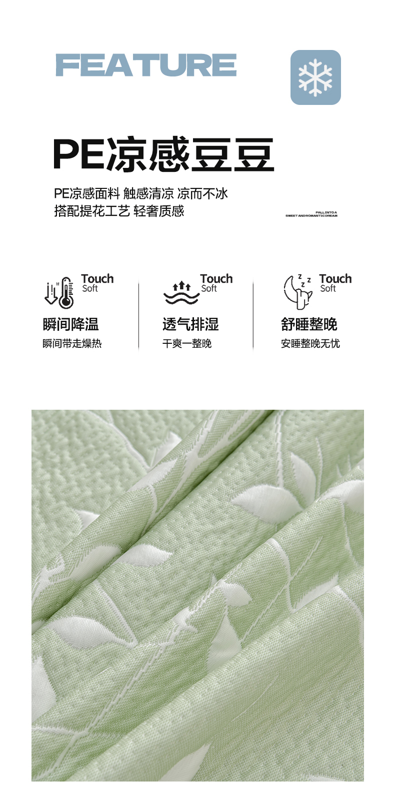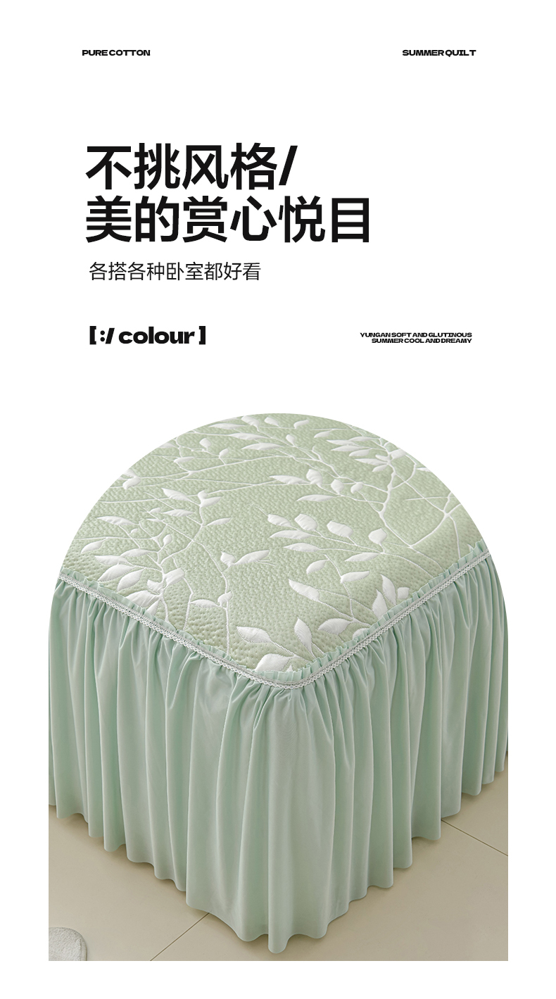 商品名称:绘萱家居 2026春夏新款530克PE100%提花冰凉豆豆床裙款凉席席子空调软席 花枝招展-绿
