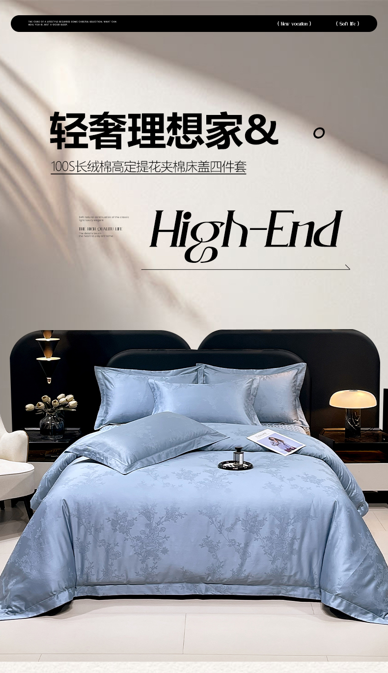 (总)畅畅家纺 2026新款高档100支长绒棉高定提花夹棉床盖纯色四件套