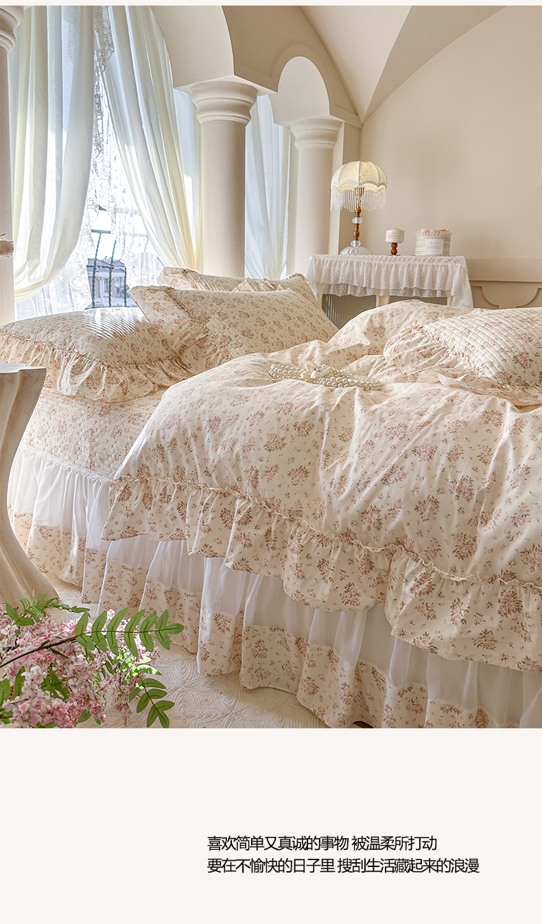 商品名称:瑞宝 2026新款全棉纯棉床盖小碎花玻璃纱四件套 芊朵