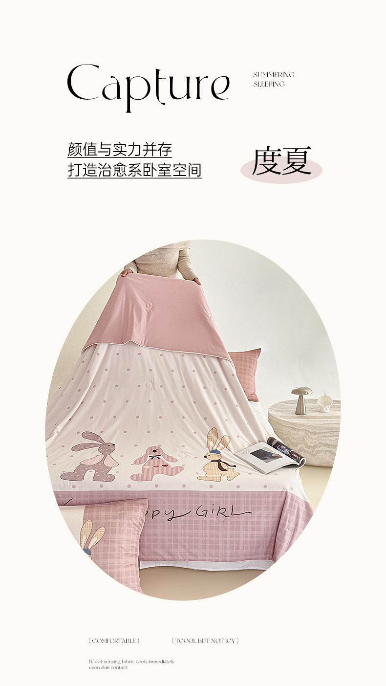 • 91家纺网 家纺一手货源 找家纺 豪美鑫 2026新款大版凉感夏被 三只小兔