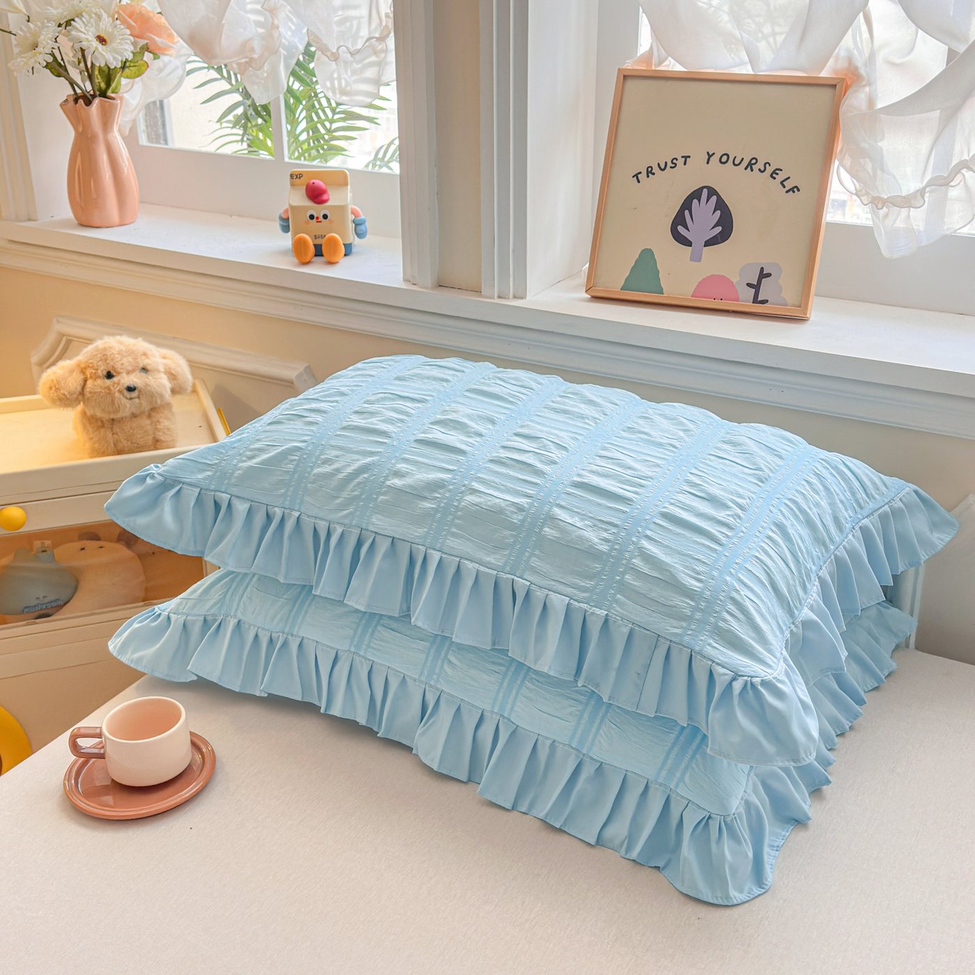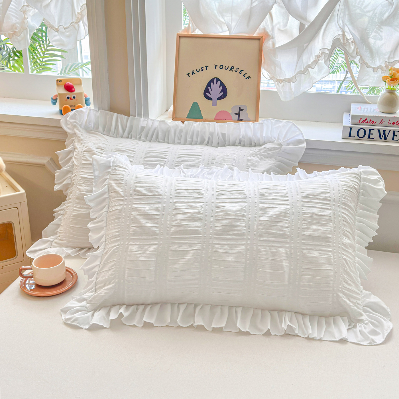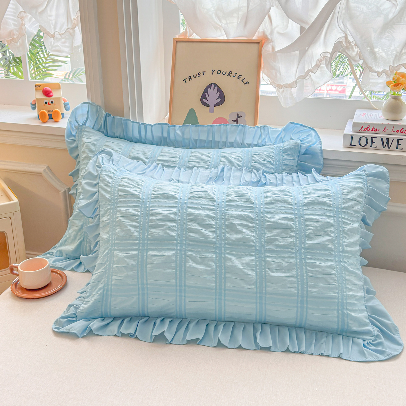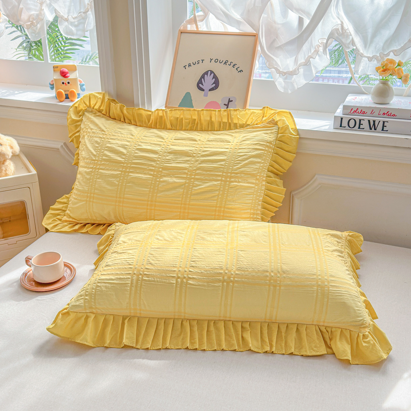 (总)衿成家纺 2026新款公主风小清新泡泡纱花边枕套,白色,黄色,蓝色,紫色
