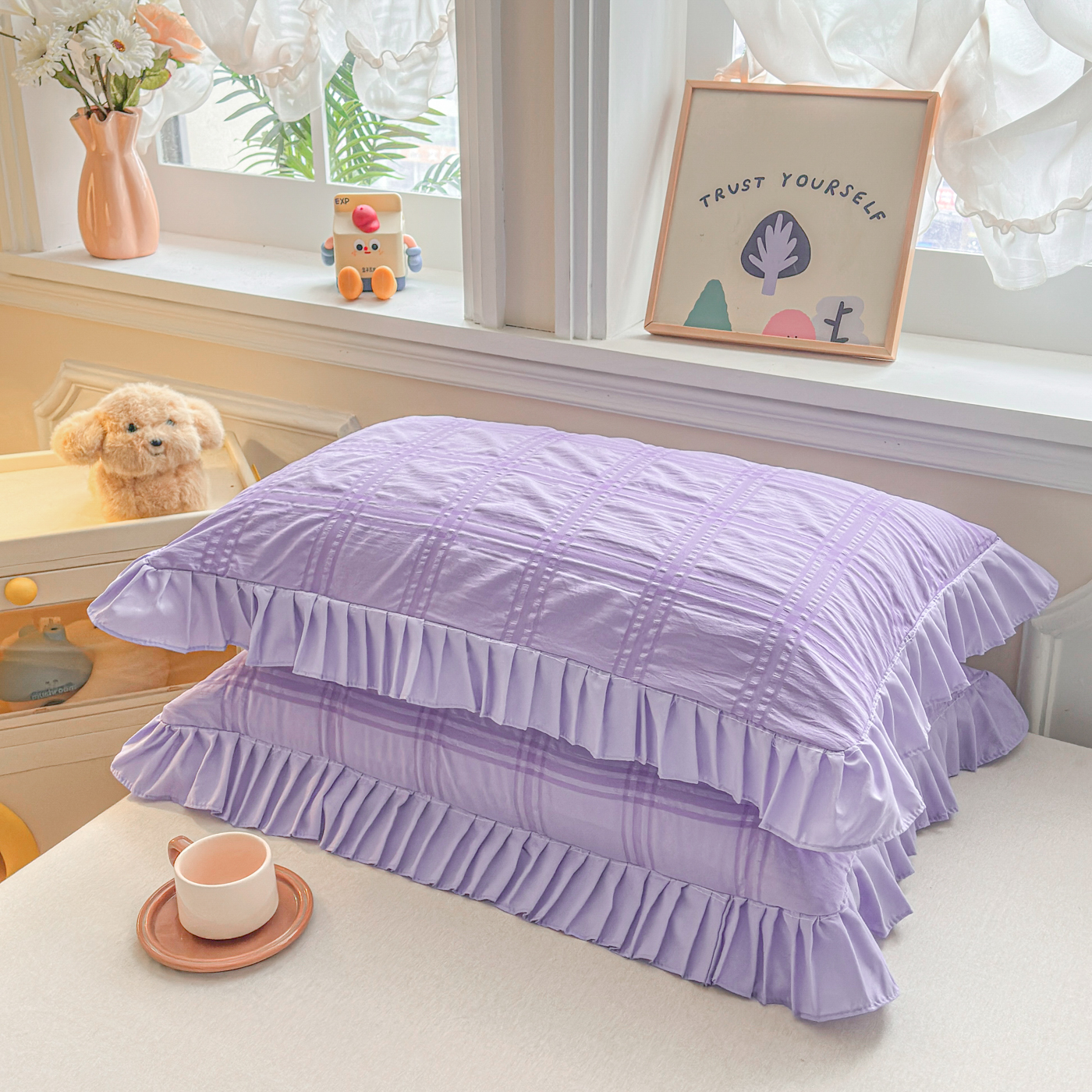 衿成家纺 2026新款公主风小清新泡泡纱花边枕套 紫色