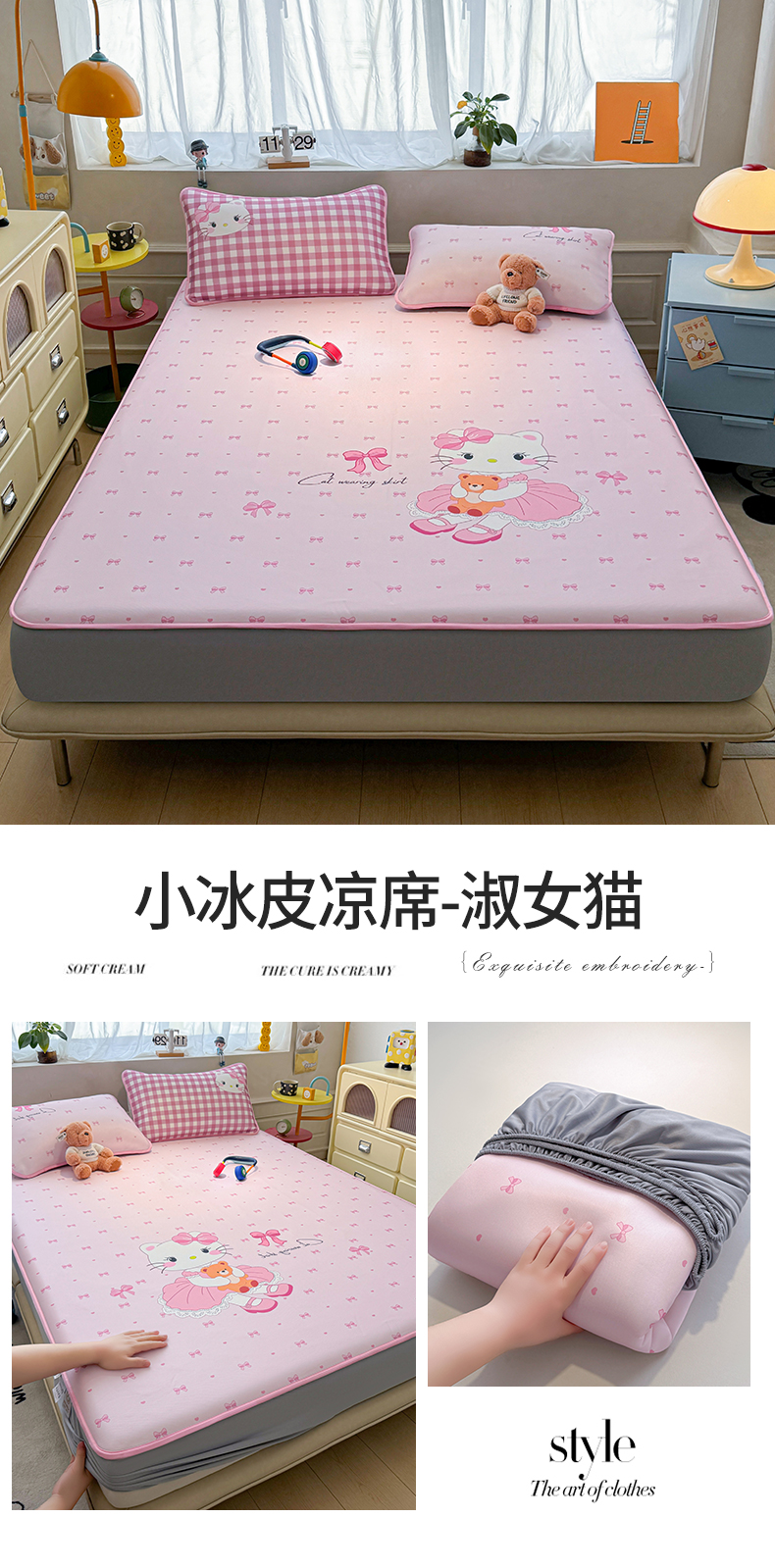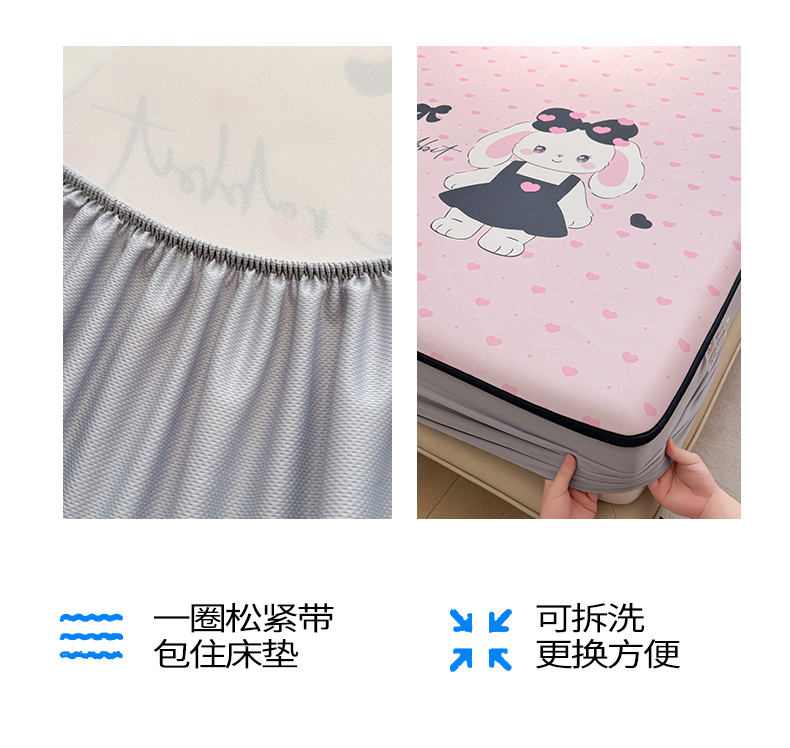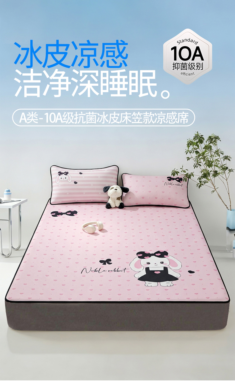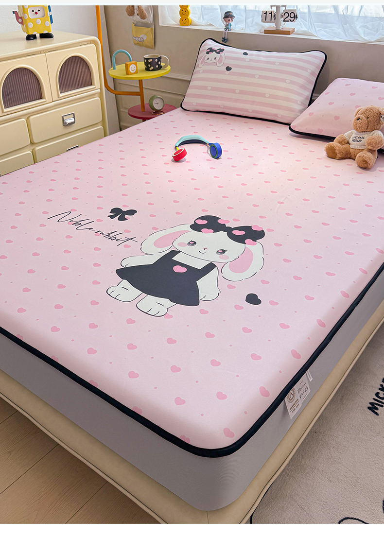 商品名称:雯豆家纺 【10A抗菌包检测】2026新款小冰皮床笠大版卡通床笠夏季凉感床笠软席子 小冰皮床笠-安妮兔