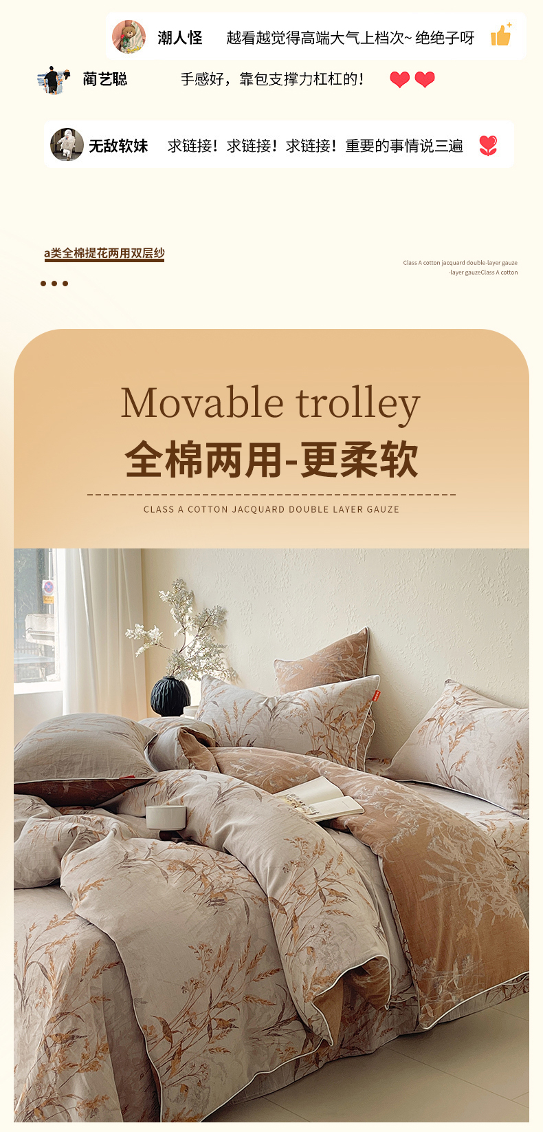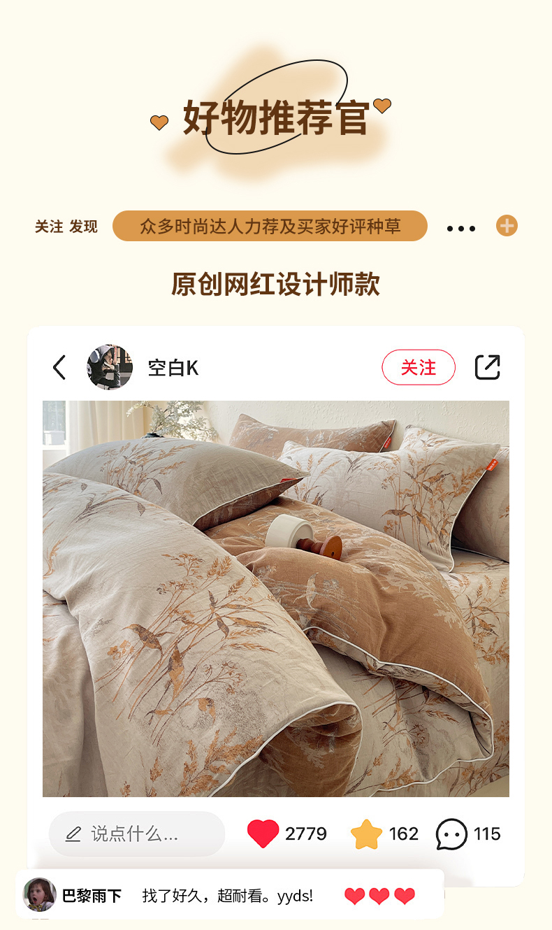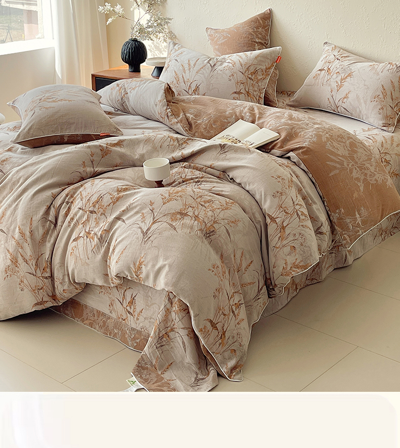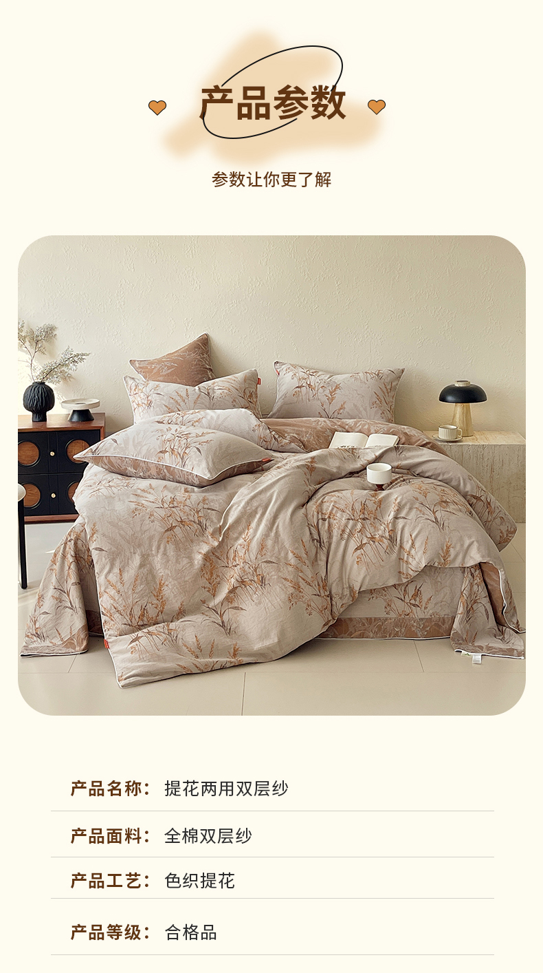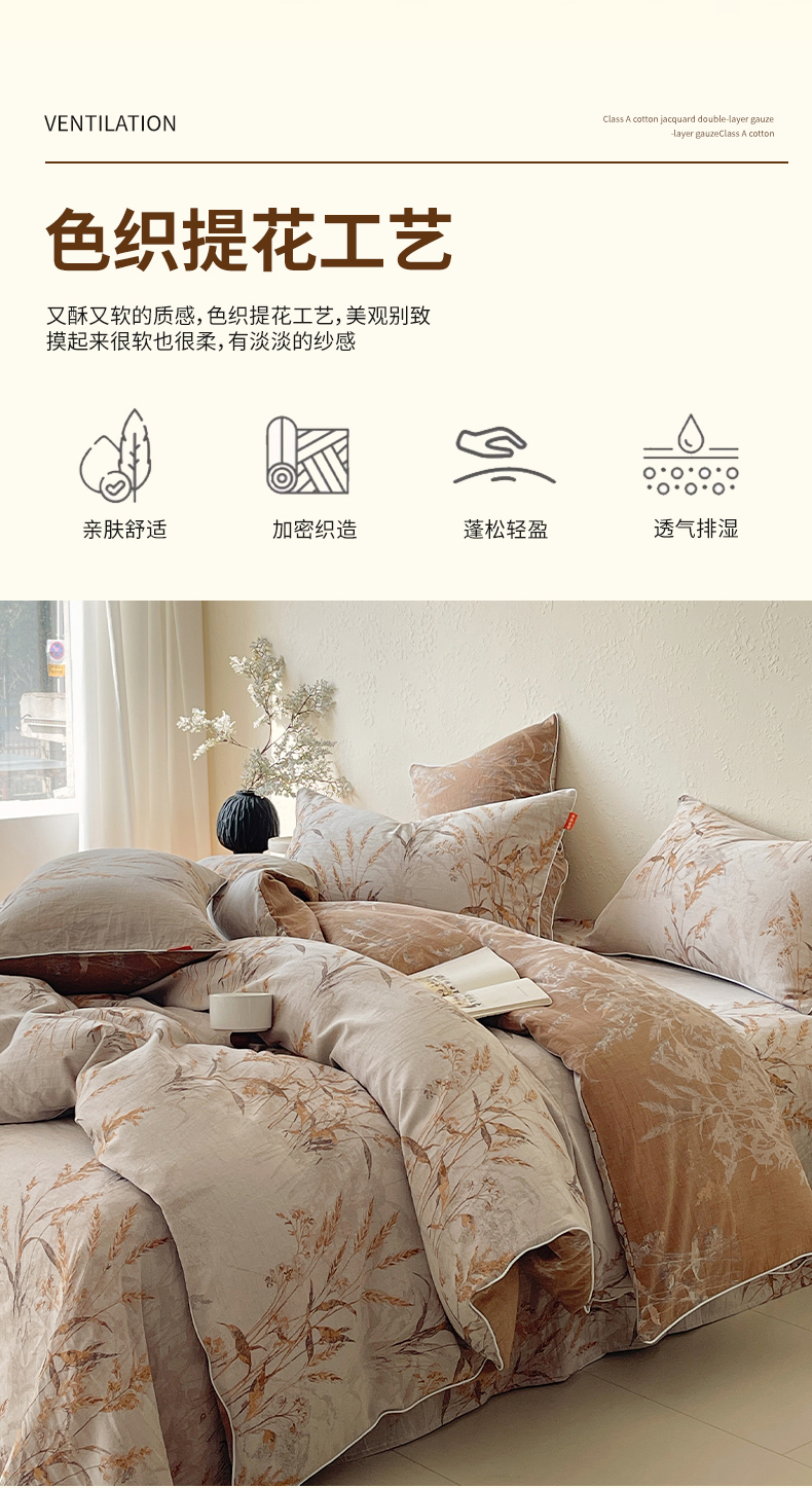 当前位置: 91家纺网 > 商品网购 > 床品套件 > 四件套 > 全棉普通四件套 > 春皖家纺 2026新款提花双层纱纯棉全棉四件套 金穗