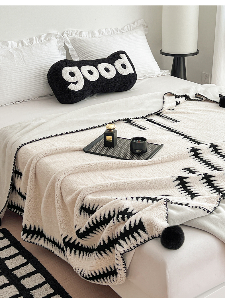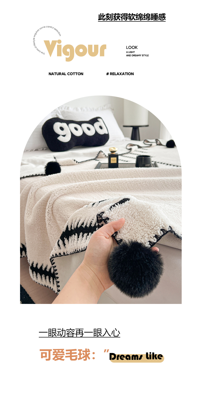 娜朵家纺 2026新款阳离子牛奶绒双层毛球复合毯 步步高升