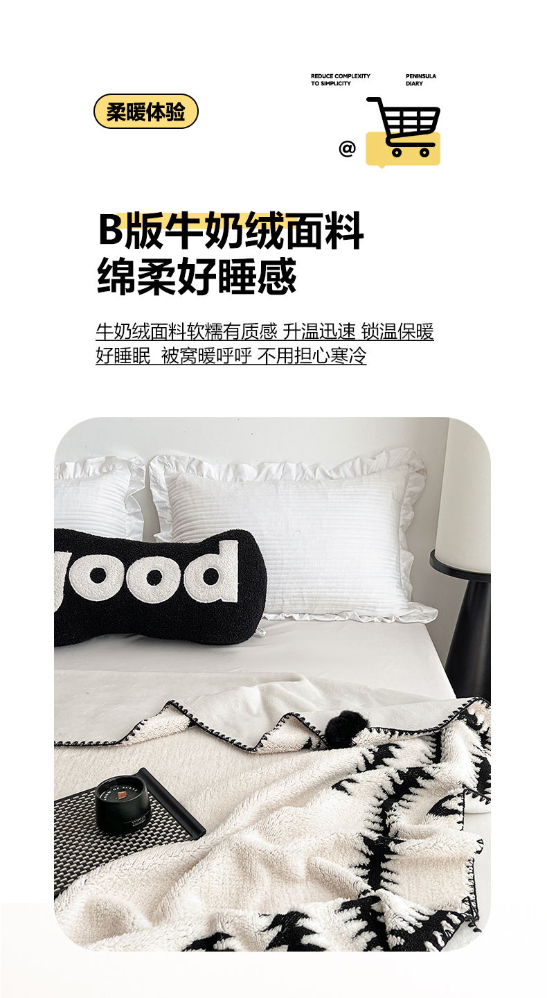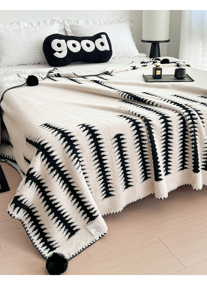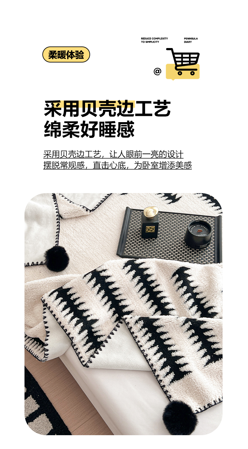 (总)娜朵家纺 2026新款阳离子牛奶绒双层毛球复合毯,千鸟,黑白森林,波浪,步步高升,齐花绽放,组合图