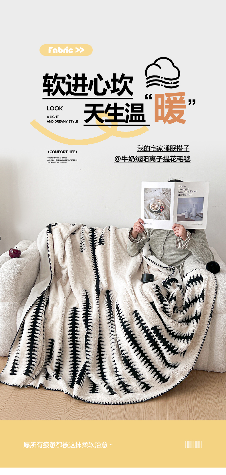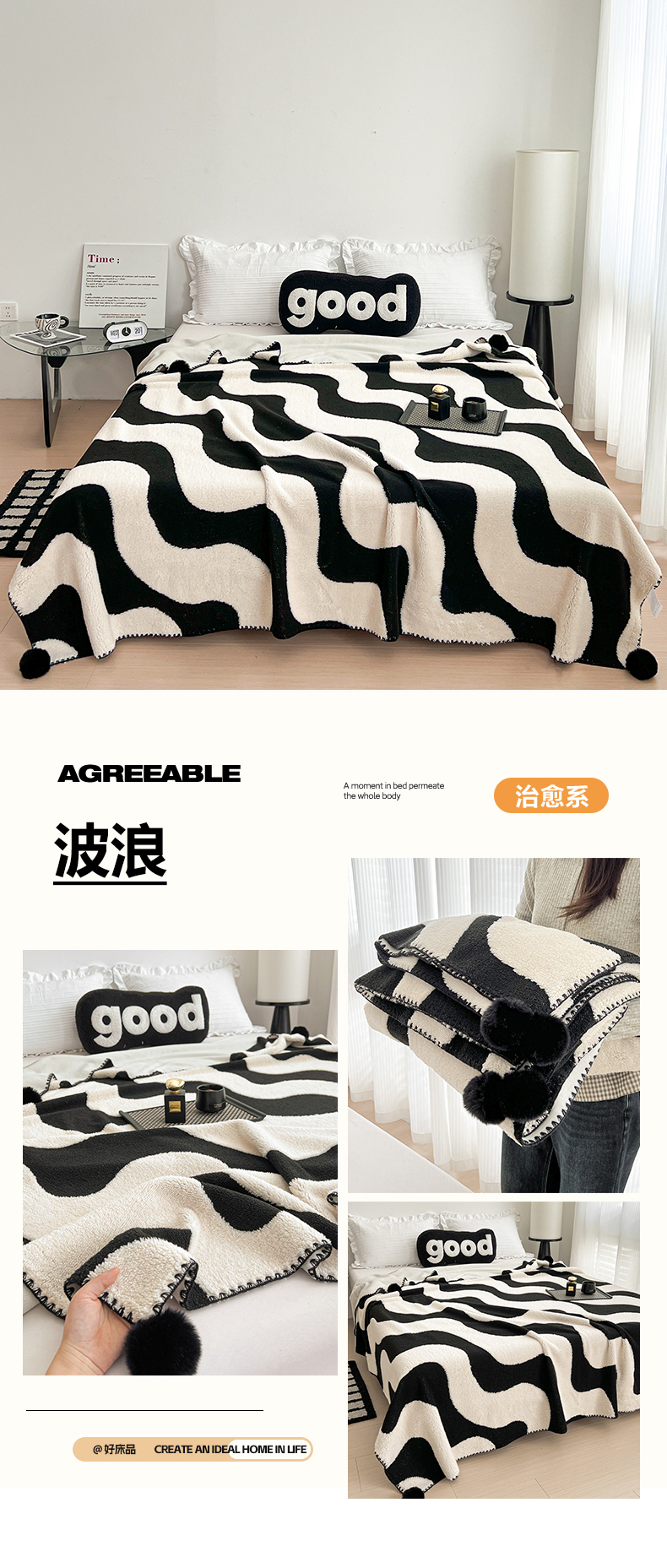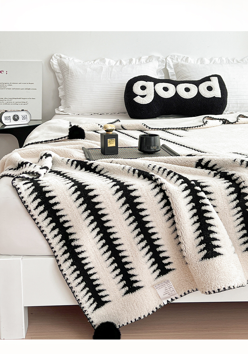 (总)娜朵家纺 2026新款阳离子牛奶绒双层毛球复合毯,千鸟,黑白森林,波浪,步步高升,齐花绽放,组合图