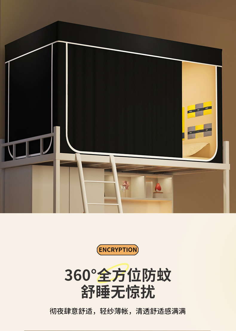当前位置: 91家纺网 > 商品网购 > 床上用品 > 蚊帐 > 学生蚊帐 > 宅部落 2026新款学生床帘宿舍上下铺床帘式强遮光学生蚊帐-纯色 纯色-黑色