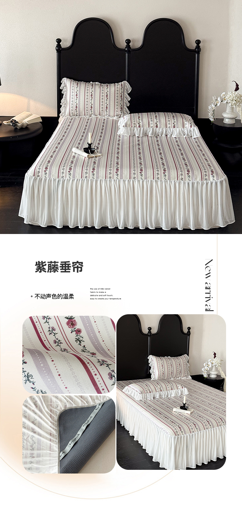 • 91家纺网 家纺一手货源 找家纺 (总)JUICY 橘滋家纺 2026新款法式复古数码印花床裙冰丝席凉席席子