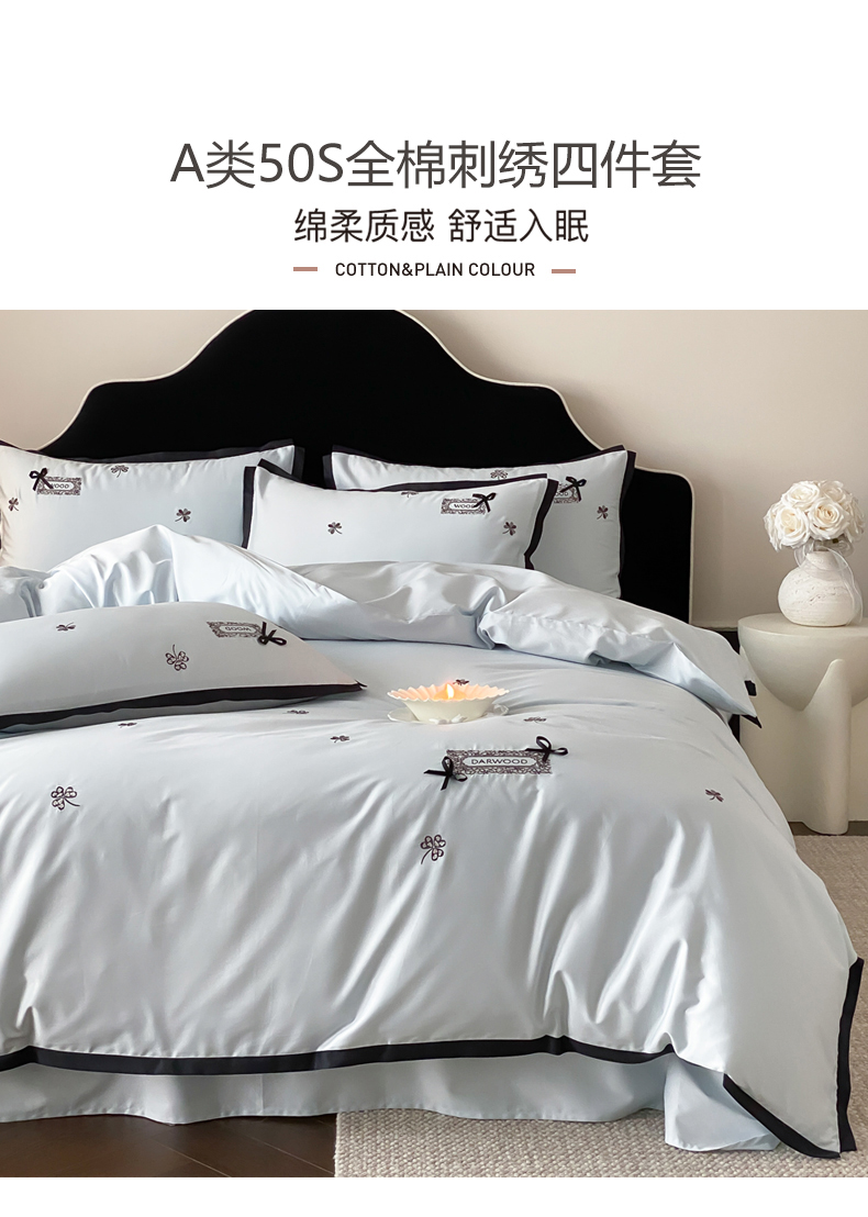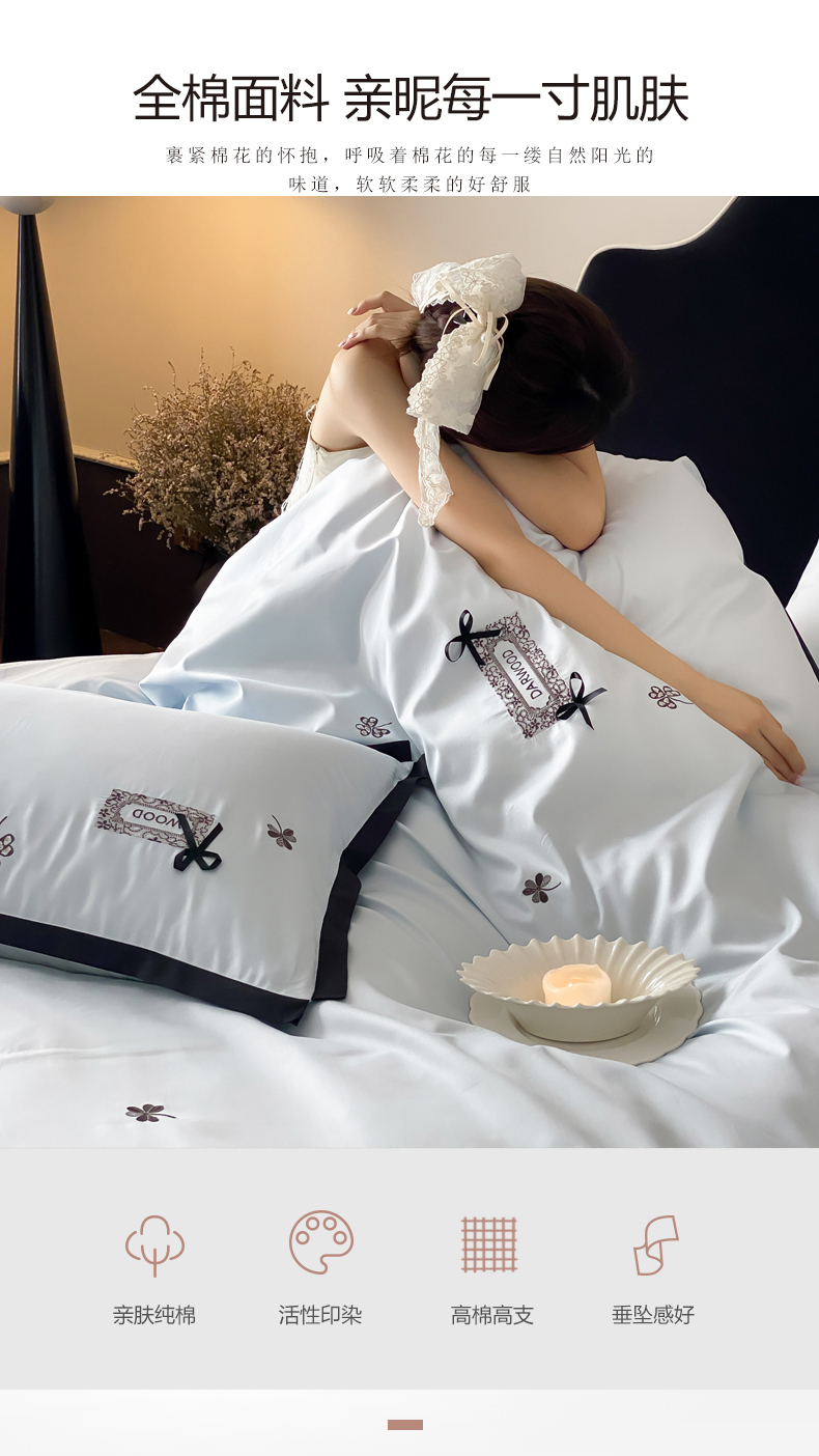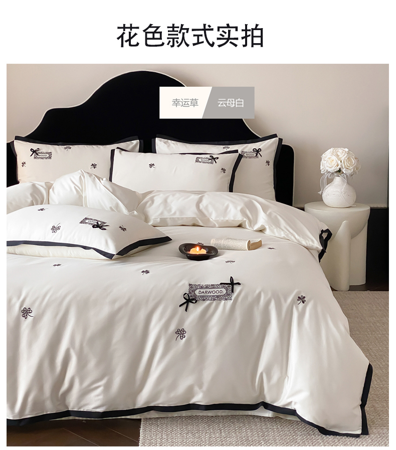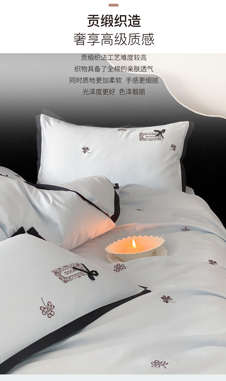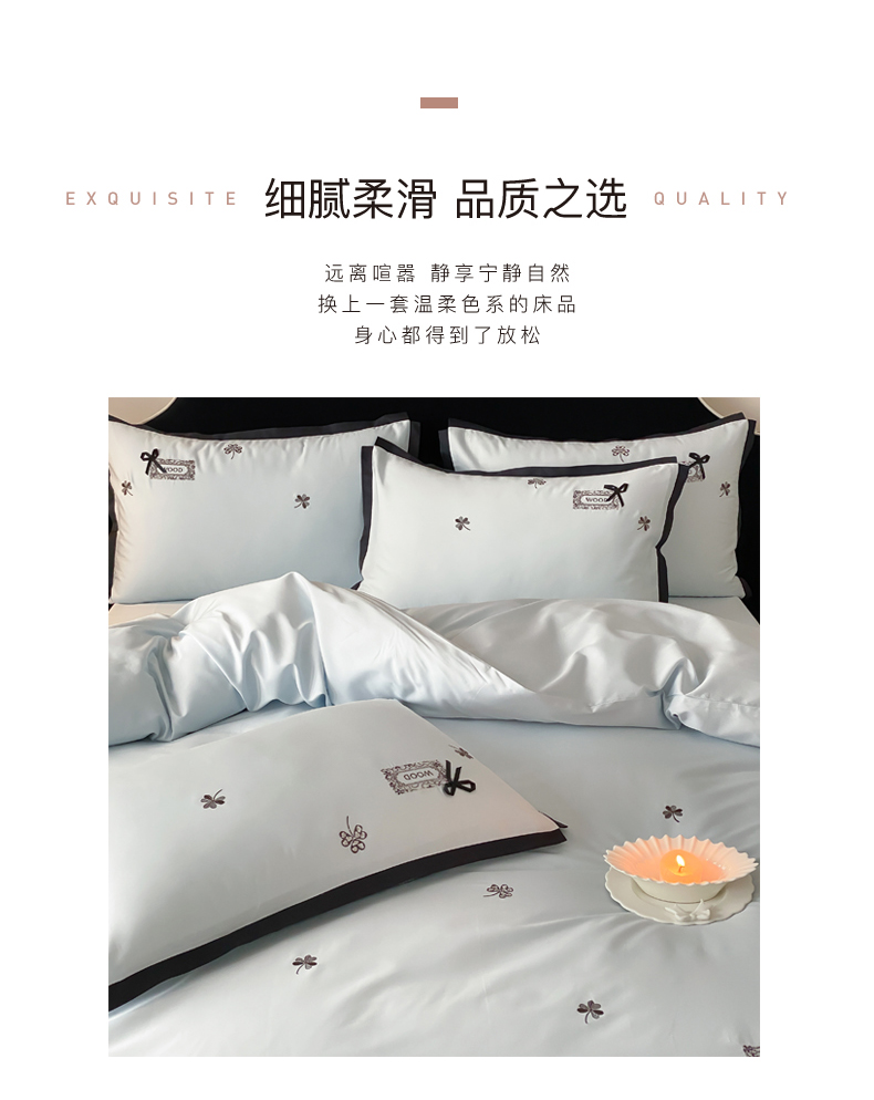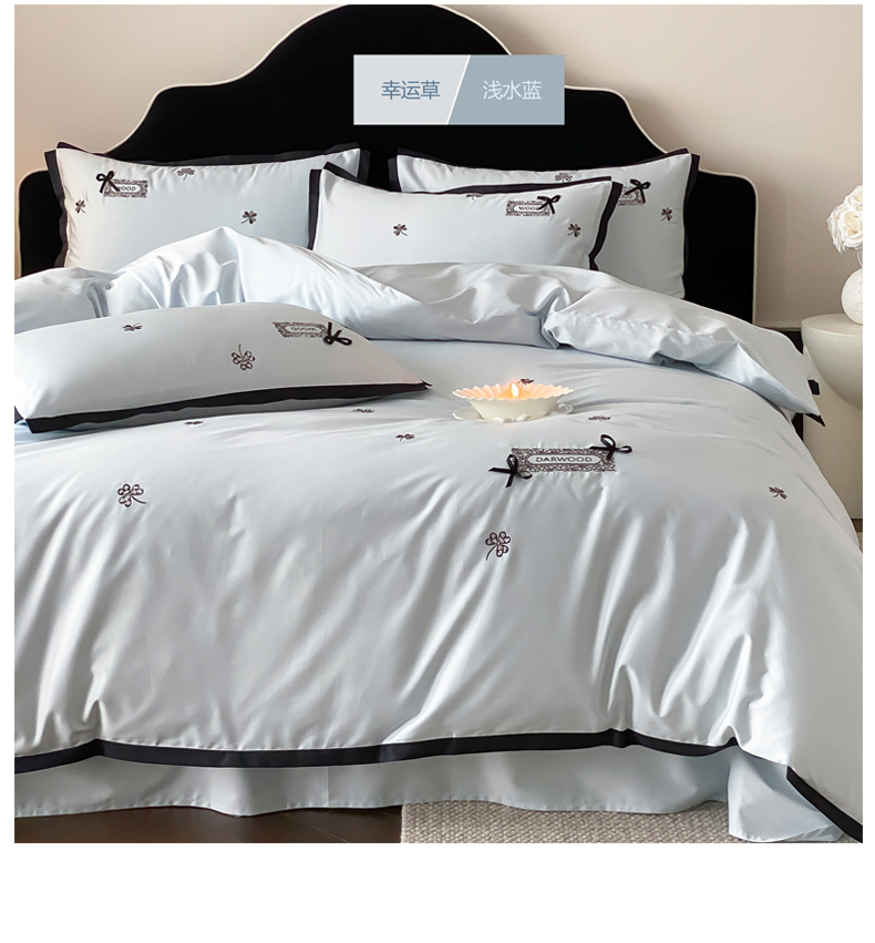 当前位置: 91家纺网 > 商品网购 > 床品套件 > 四件套 > 全棉普通四件套 > (总)佳汐蓝家纺 2026新款50S全棉纯棉轻奢工艺款精致刺绣四件套-幸运草系列