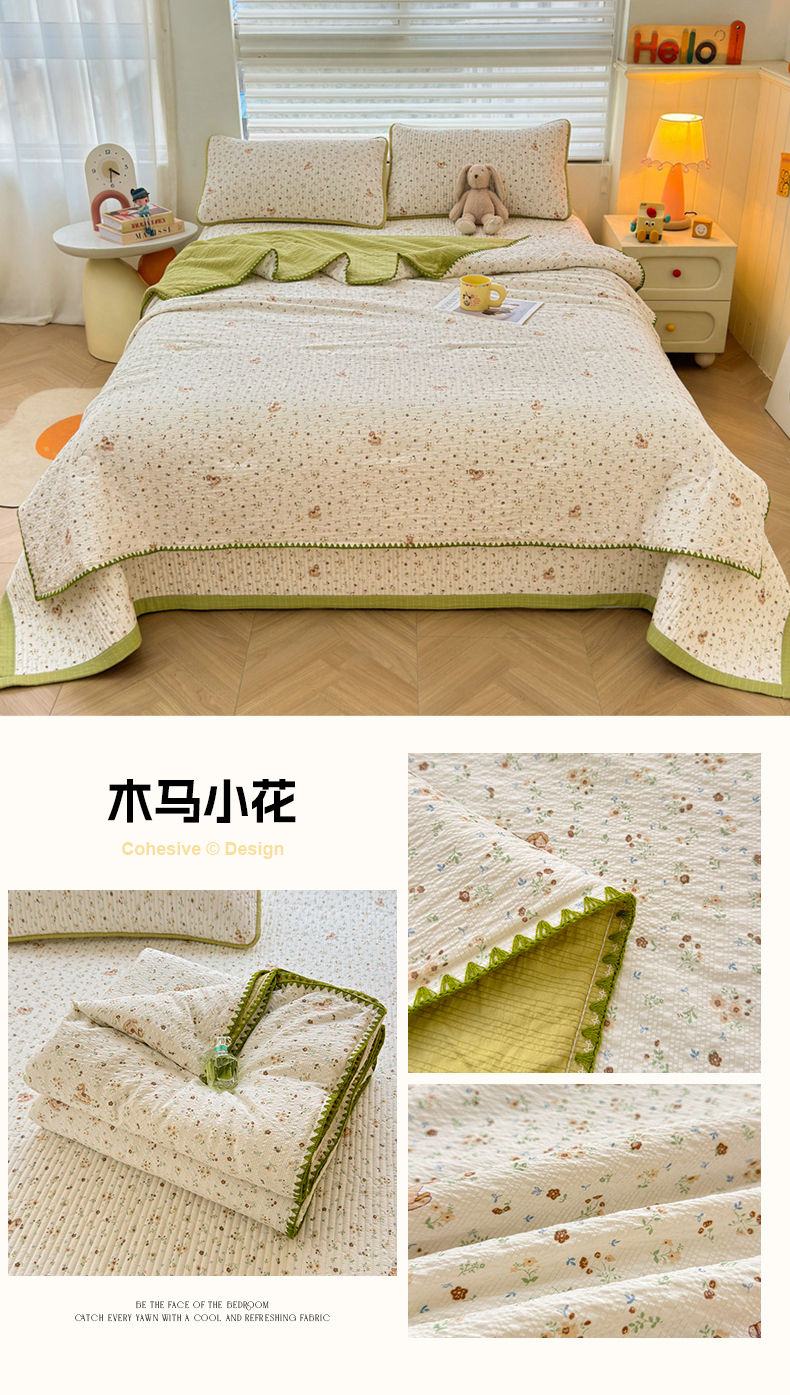 • 91家纺网 家纺一手货源 找家纺 梵朴 2026新款A类泡芙双层纱贝壳边床盖夏被四件套三角针夏凉被空调被 组合图