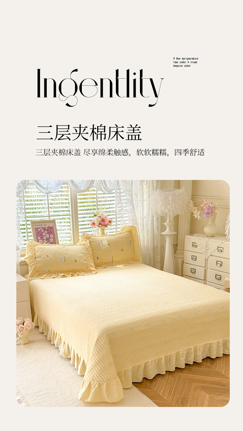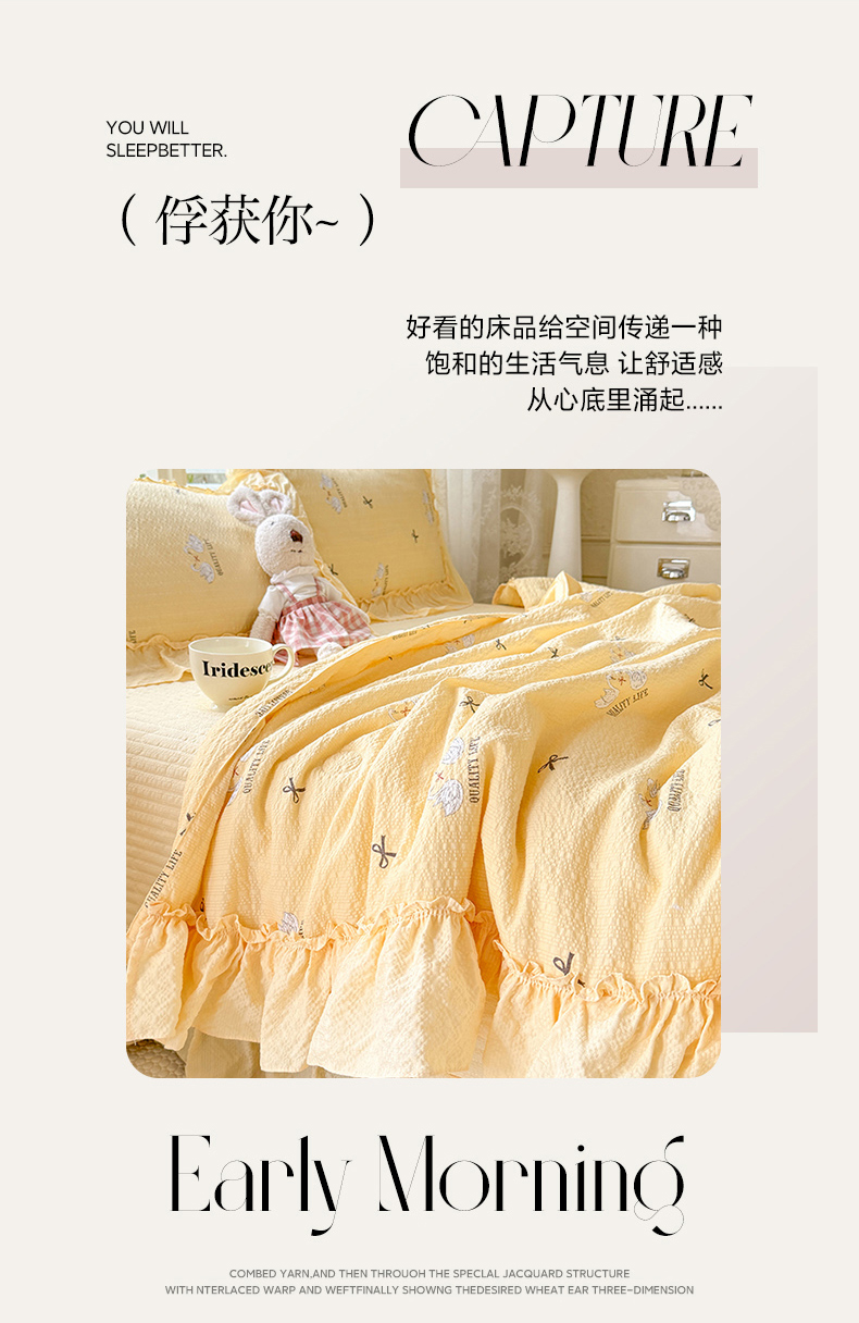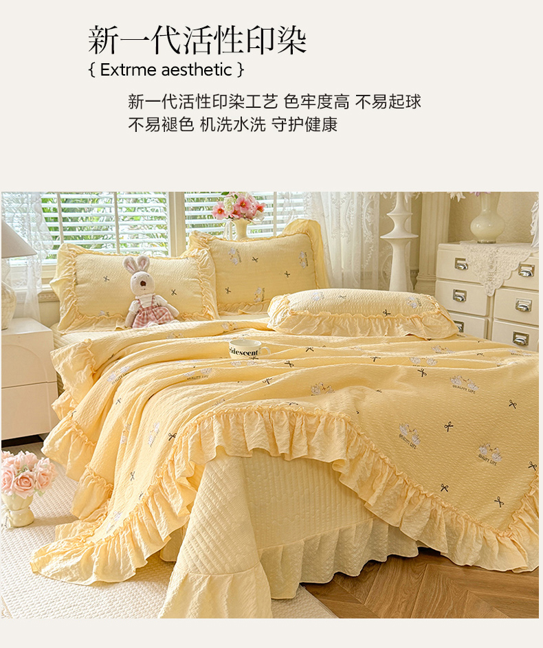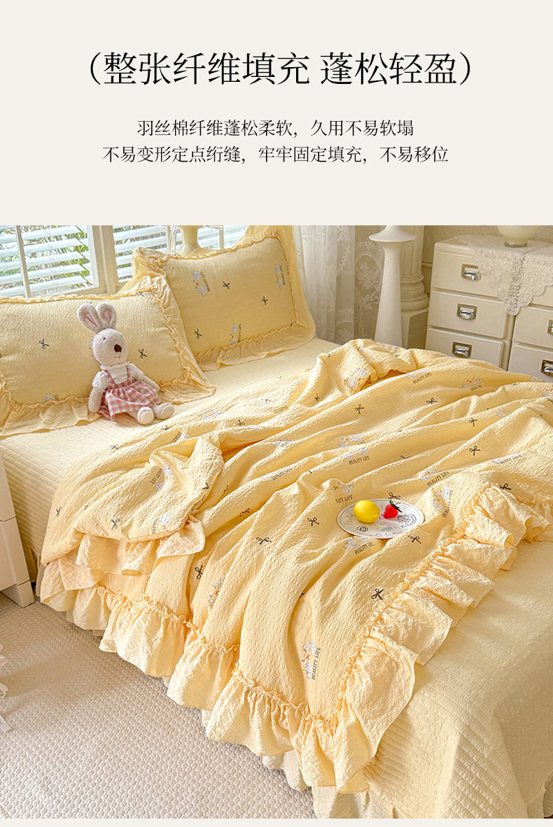 韩约家纺 2026新款法式大花边床盖款泡芙棉夏凉被空调被四件套 妮可