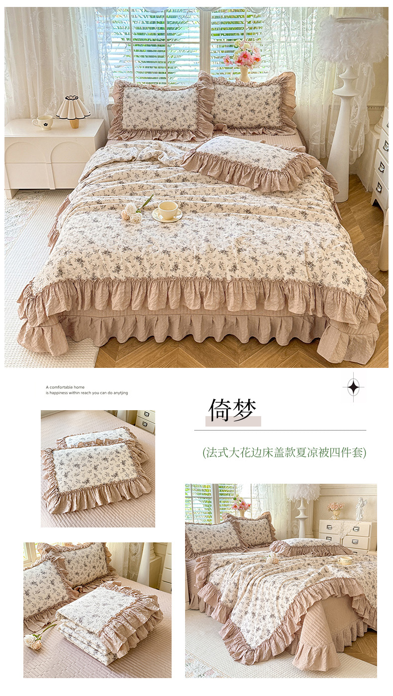 商品名称:韩约家纺 2026新款法式大花边床盖款泡芙棉夏凉被空调被四件套 妮可
