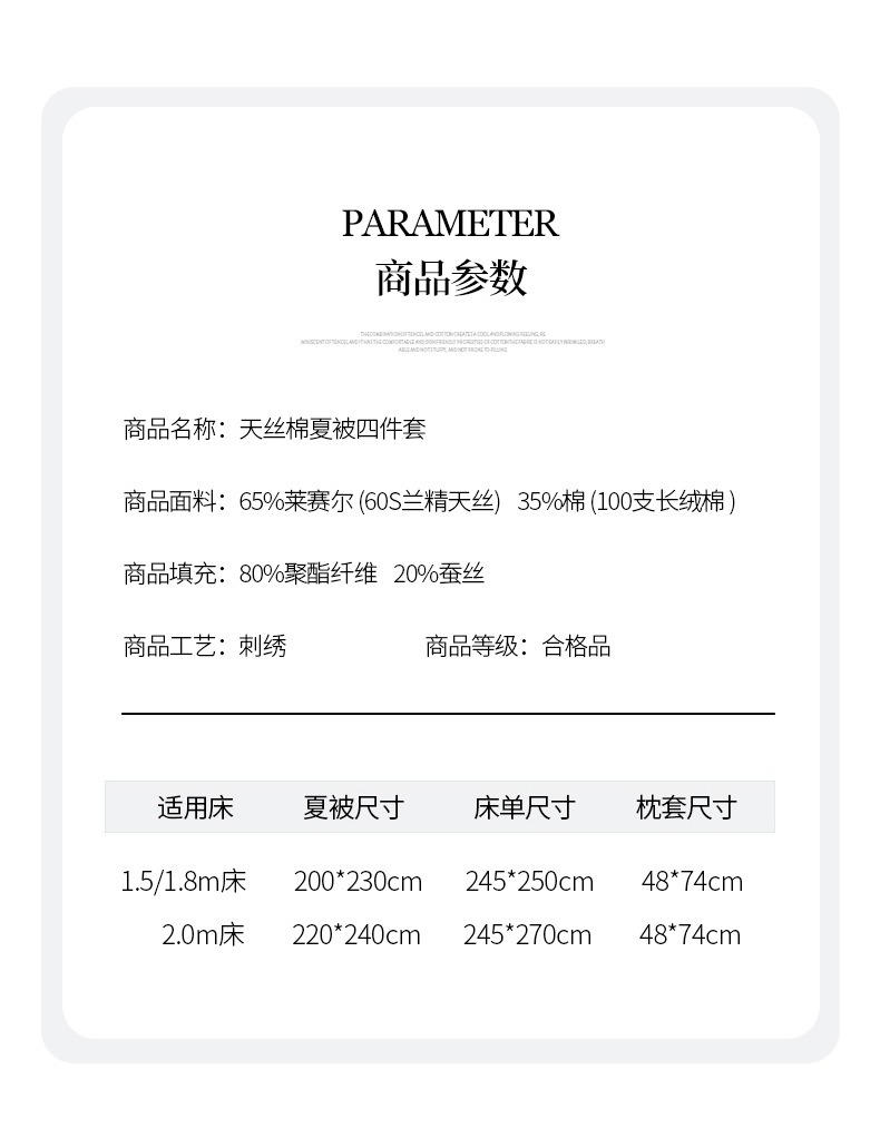 200*230cm夏被床笠款四件套 | ¥280.00 |