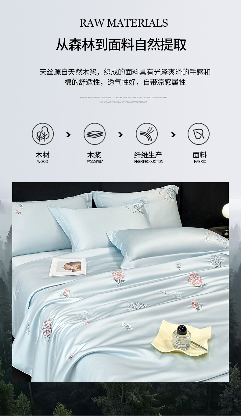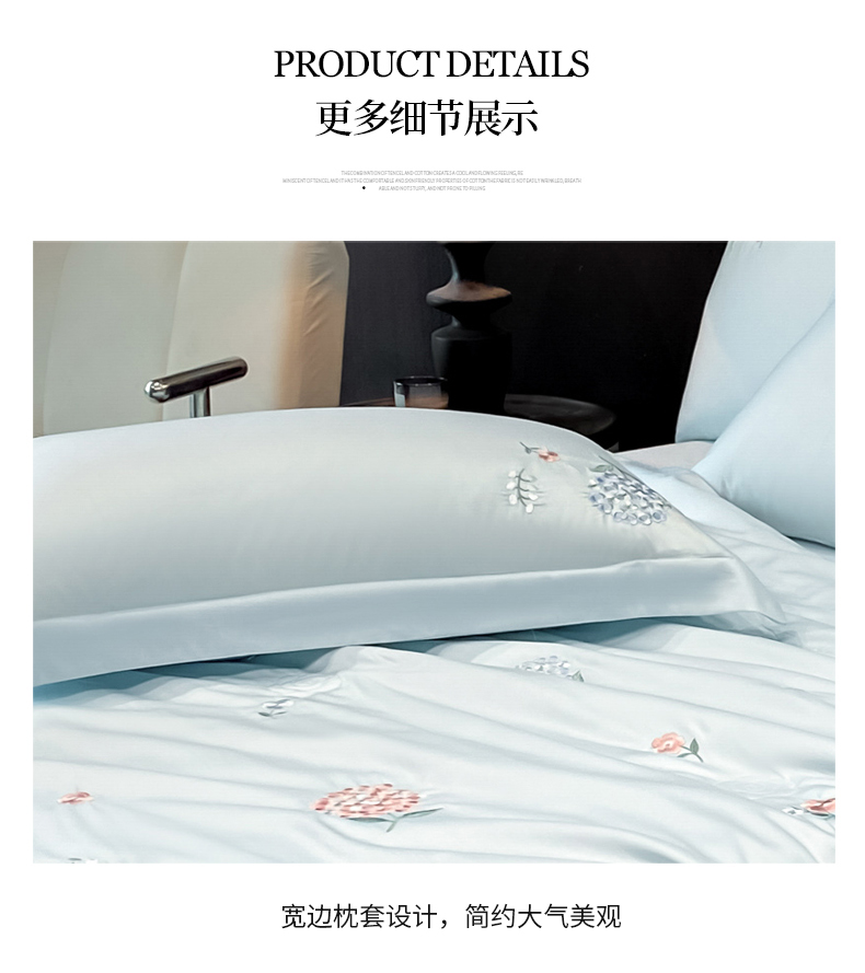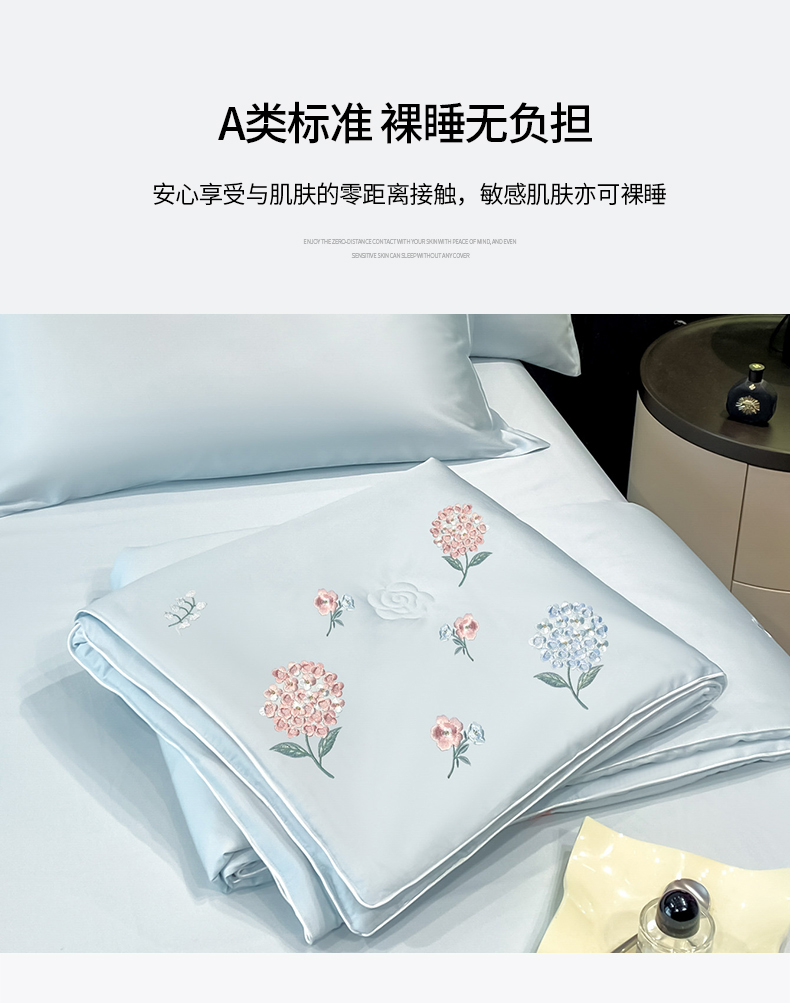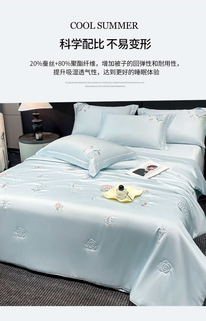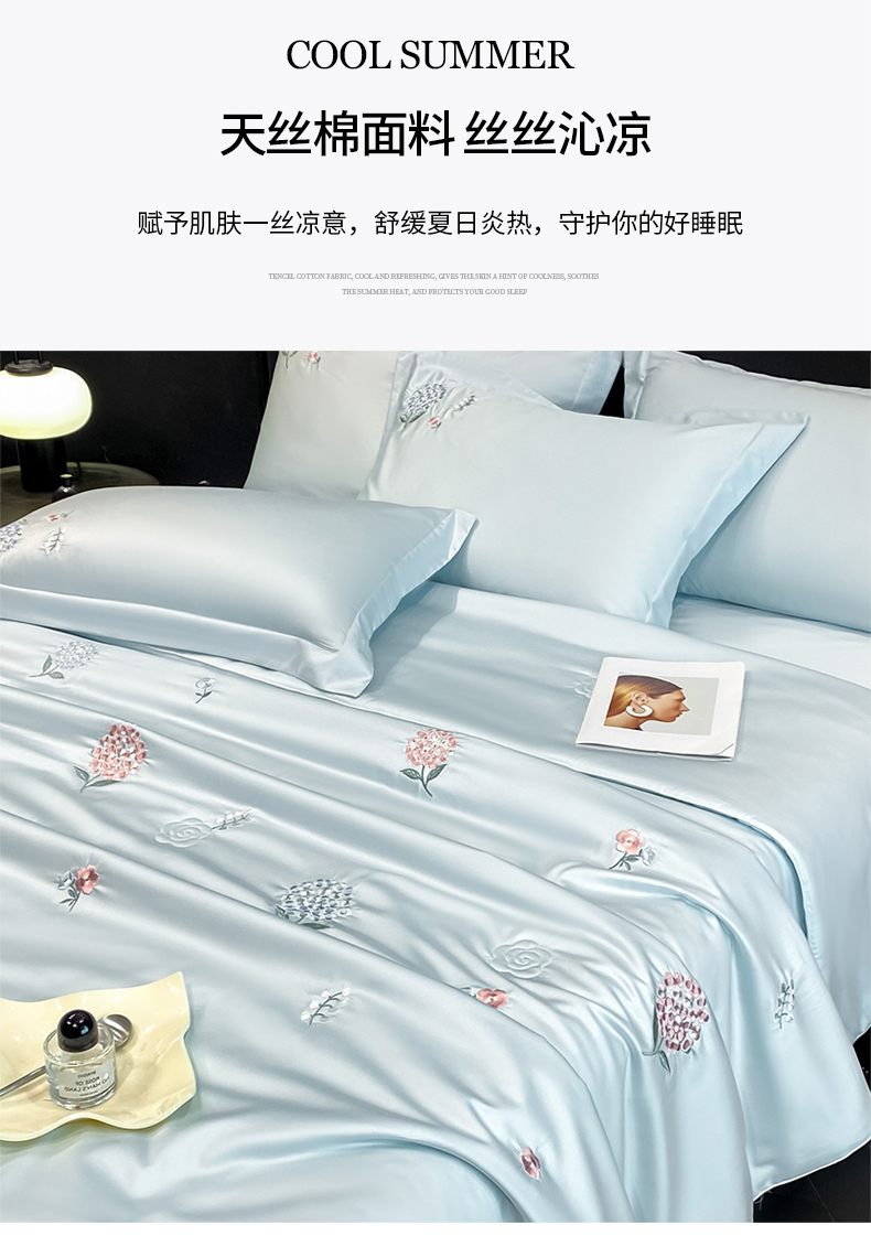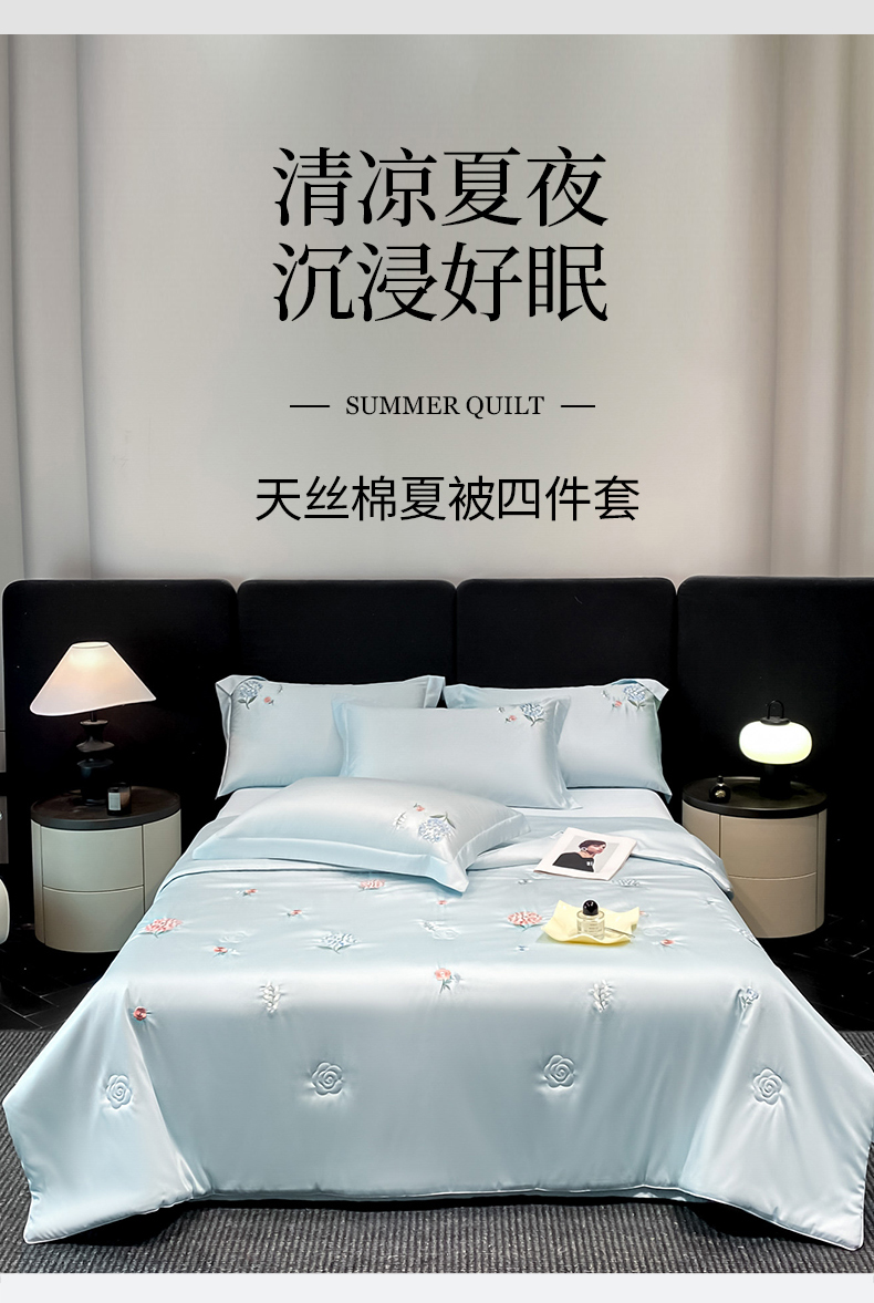 当前位置: 91家纺网 > 商品网购 > 床品套件 > 四件套 > 其它四件套 > 新方向 2026新款刺绣A类20%蚕丝天丝棉夏被四件套-花恋 花恋-微光蓝
