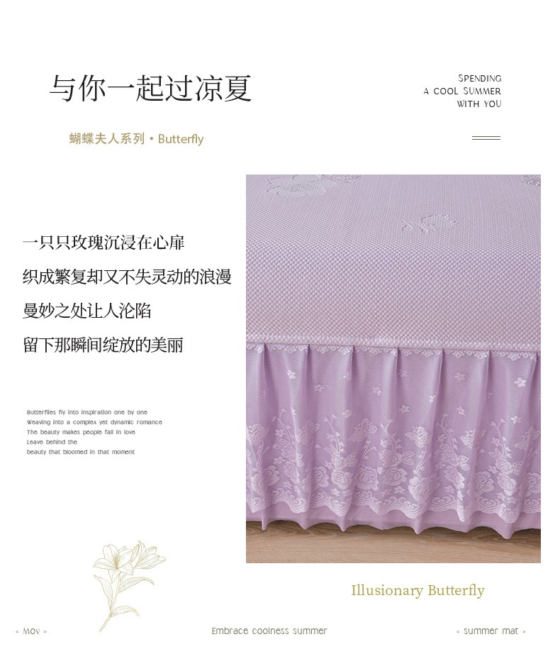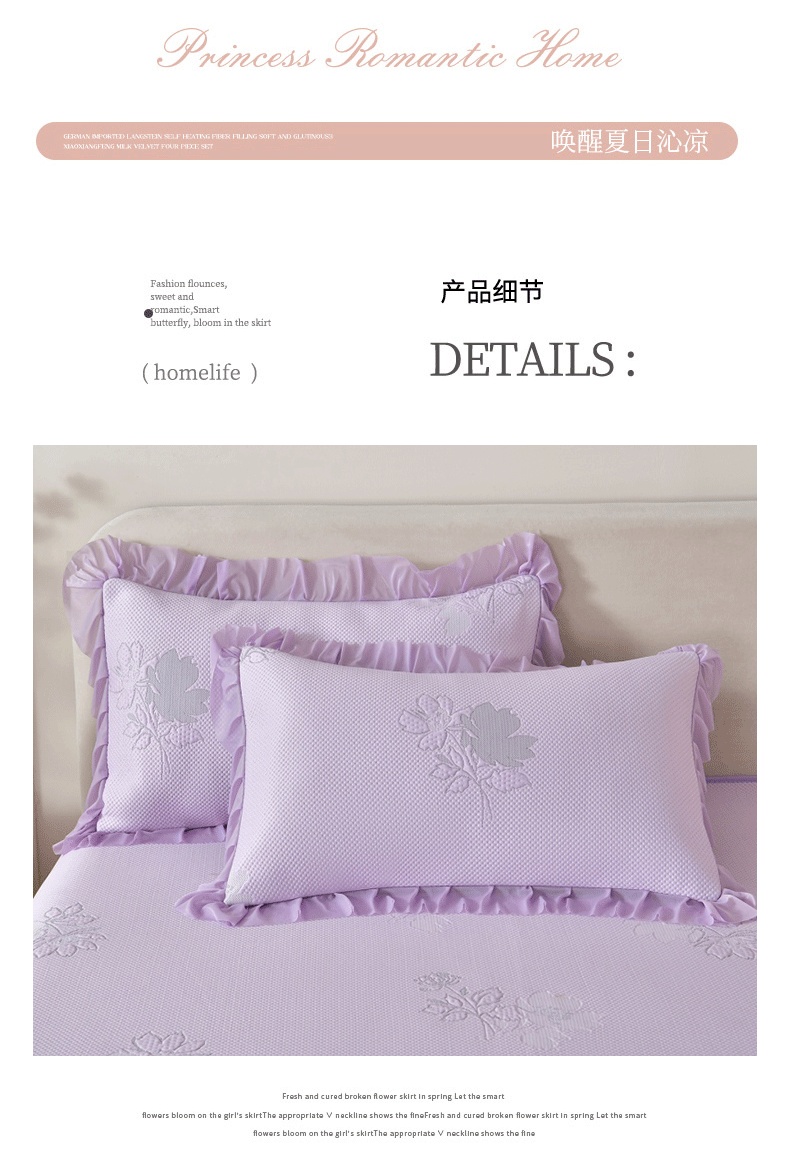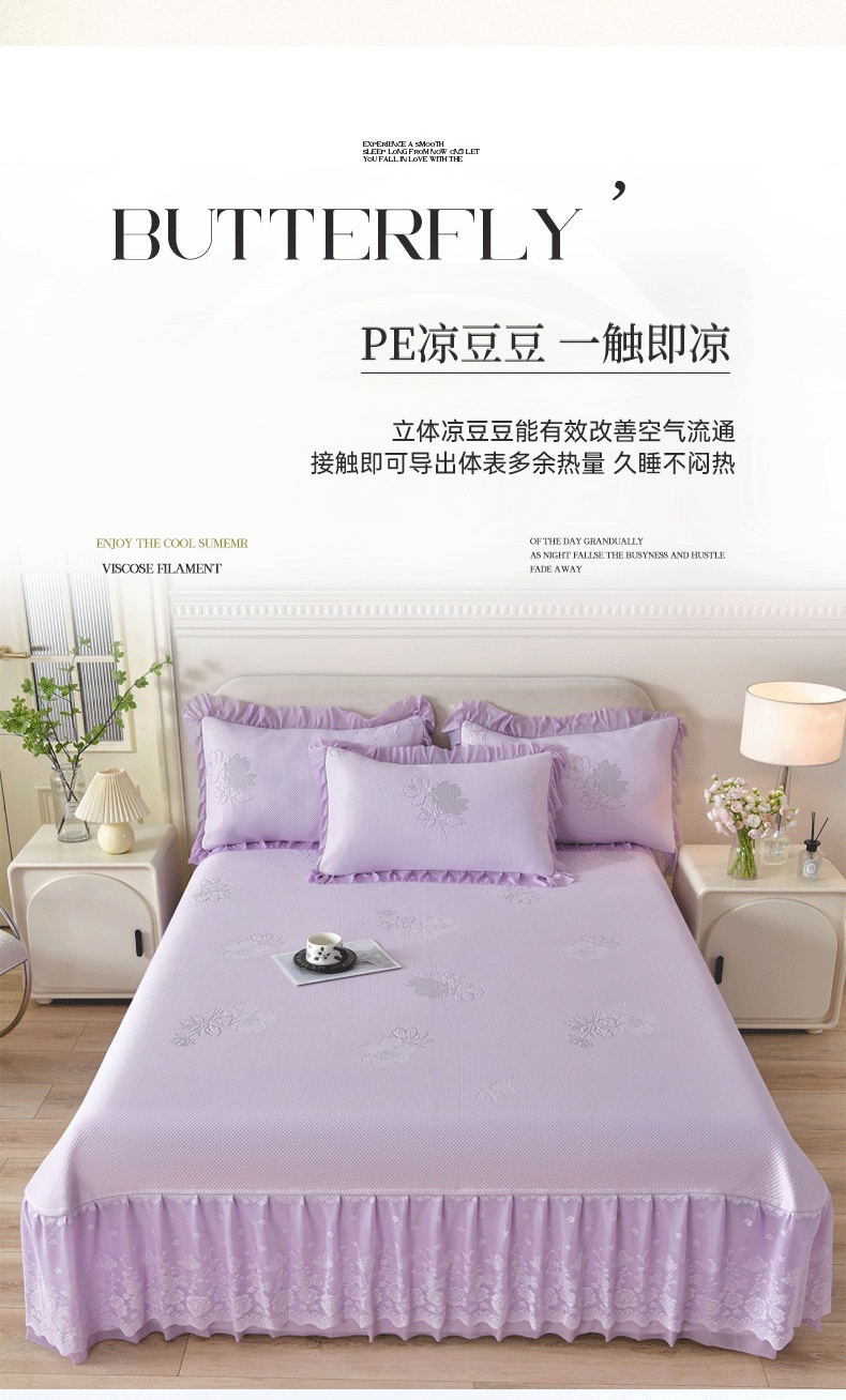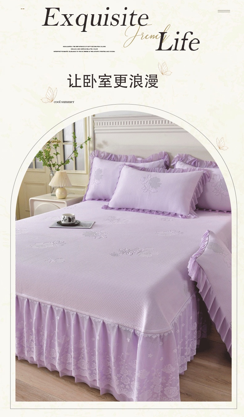 商品名称:绒耀家纺 直播新款加厚复合冰豆豆PE高分子凉感丝双面提花凉席三件套双层花边(控价最低139起) 静庭玫瑰-紫
