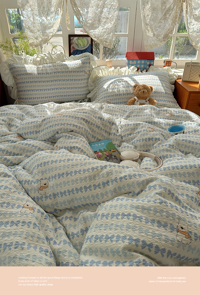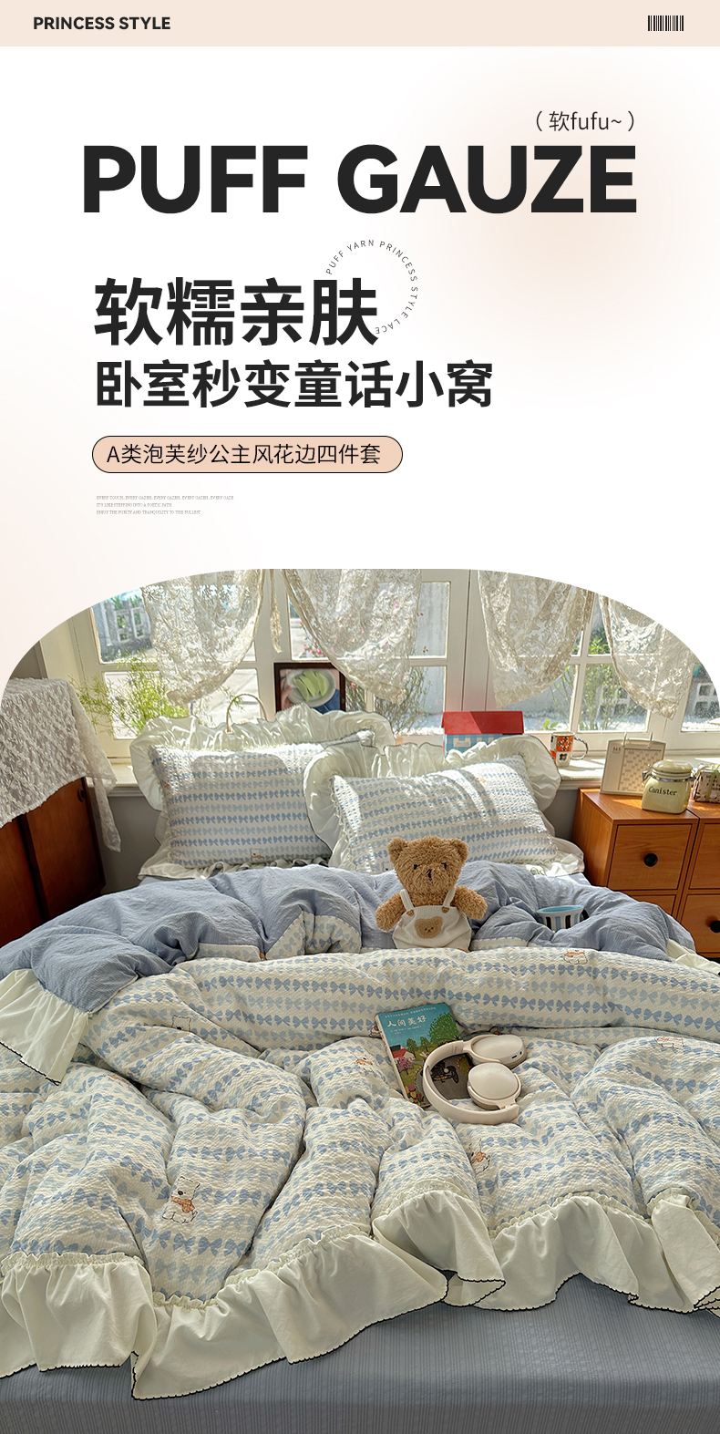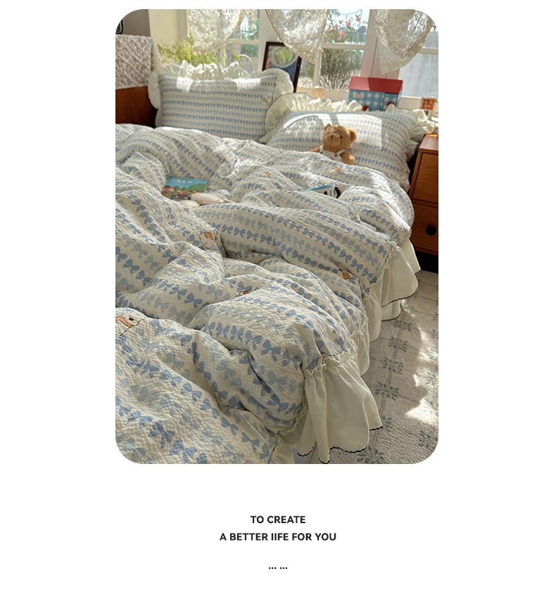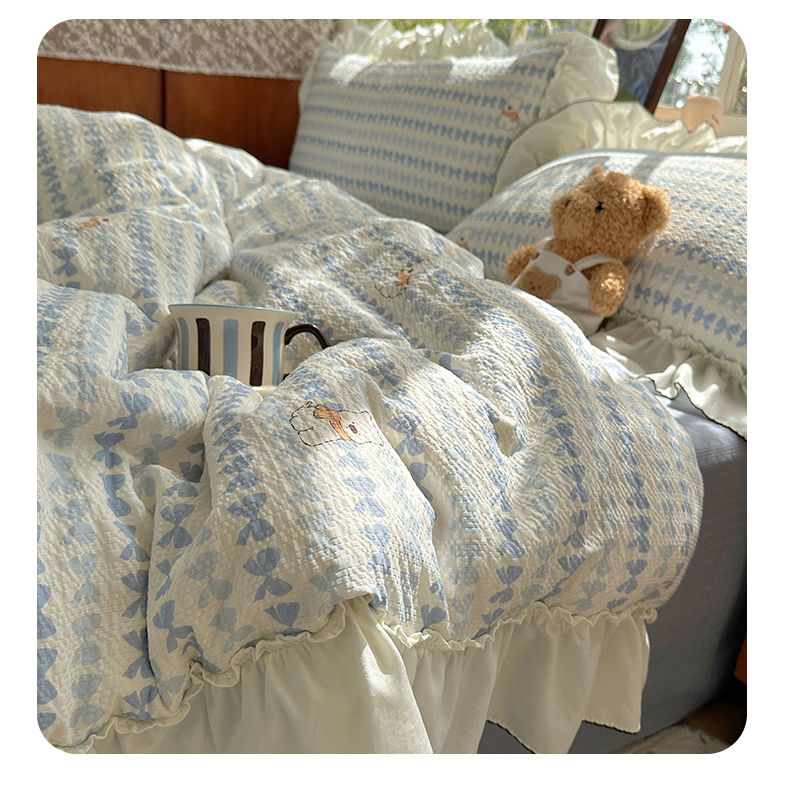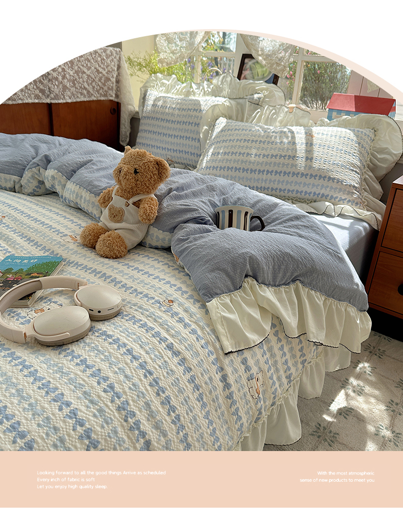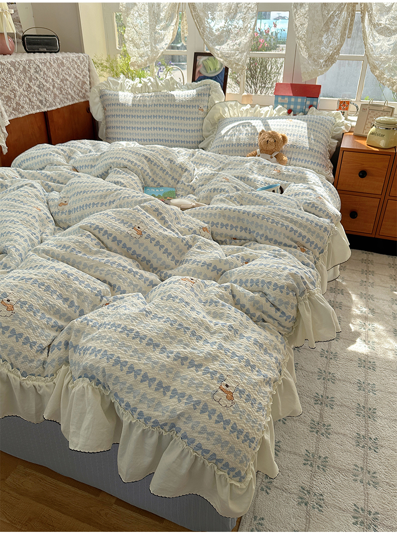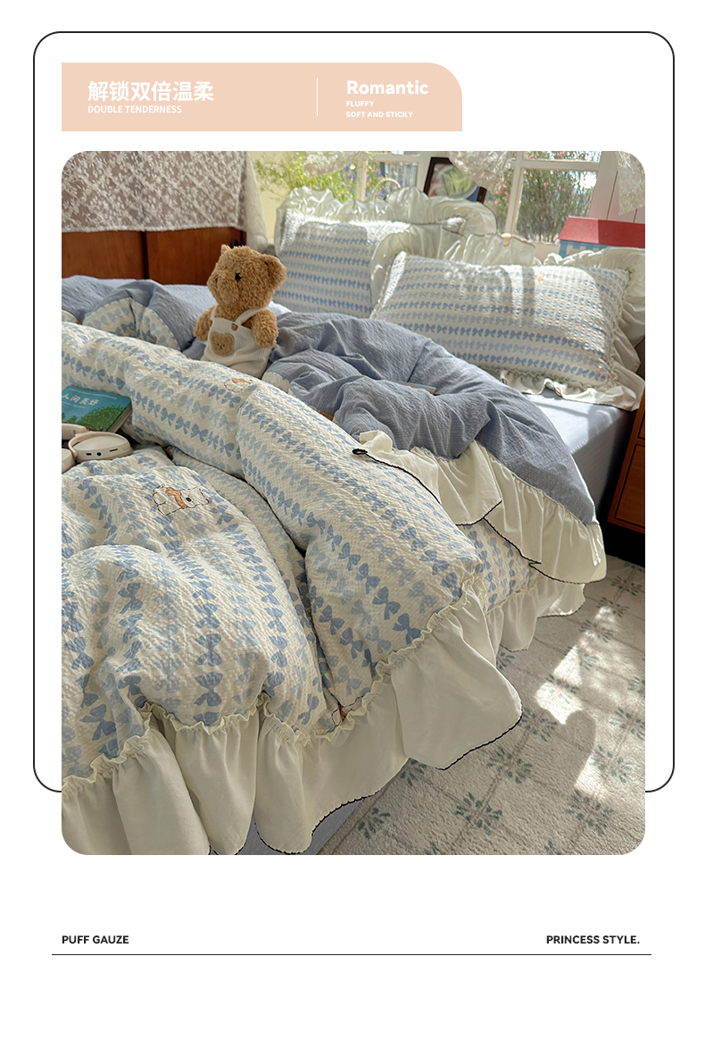当前位置: 91家纺网 > 商品网购 > 床品套件 > 四件套 > 化纤普通四件套 > 凯洛奇 2026新款公主风云感泡芙纱花边款四件套 海盐蝶