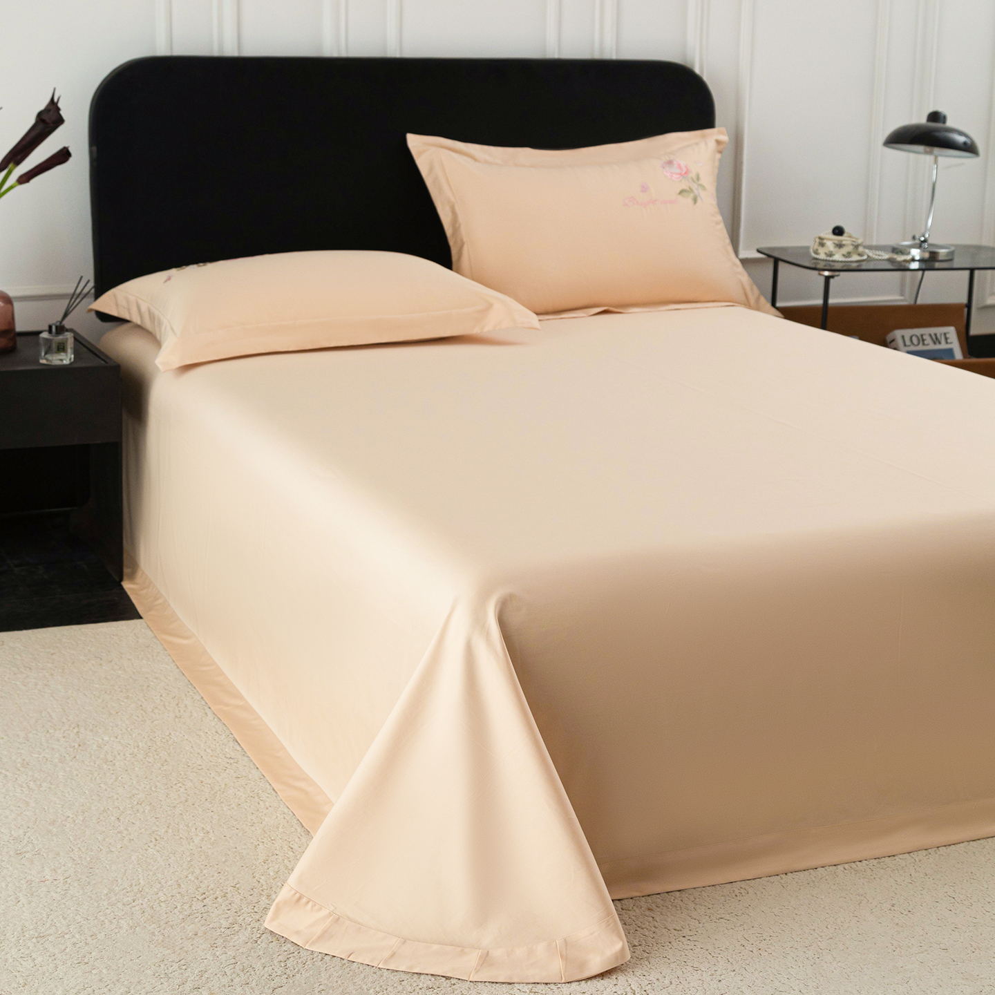 (总)莉迪娅 2026新款50s双股长绒棉纯色简约绣花床单三件套--玫瑰恋人系列,中国红,樱红玉,魅惑紫,爱玛橙,粉豆沙,富贵灰,高级灰,海藻蓝,姜黄,经典咖,卡其,孔雀兰,抹茶绿,奶油黄,水银灰,水云绿,仙女粉,香槟金,香妃玉,香芋紫,珍珠白
