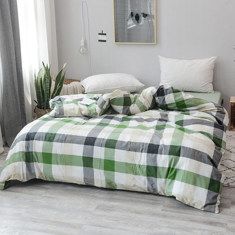 柠萌家居 全棉色织水洗棉无印良品风纯色格子系列单被套