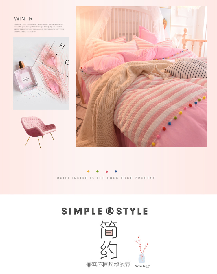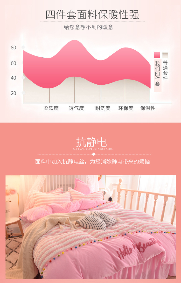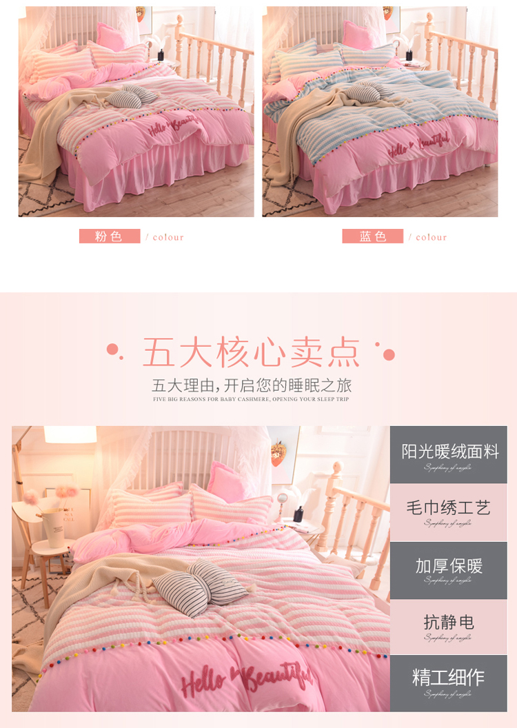 欧冠家纺 2018新品阳光暖绒系列 粉