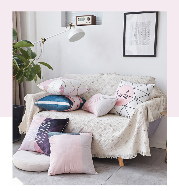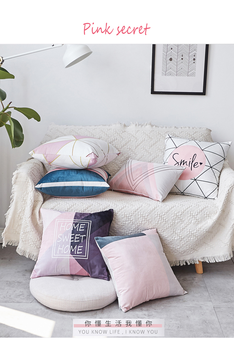 (总)希诺家居 ins北欧极简风水晶绒抱枕沙发靠垫粉色系列