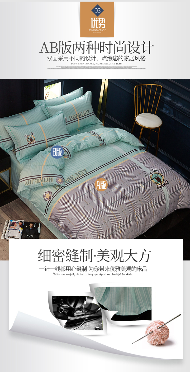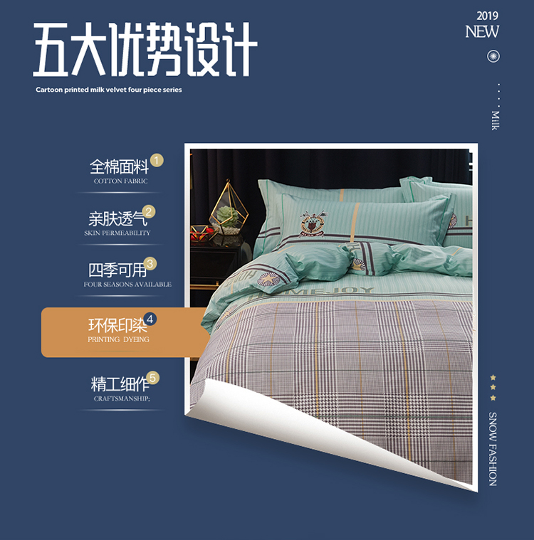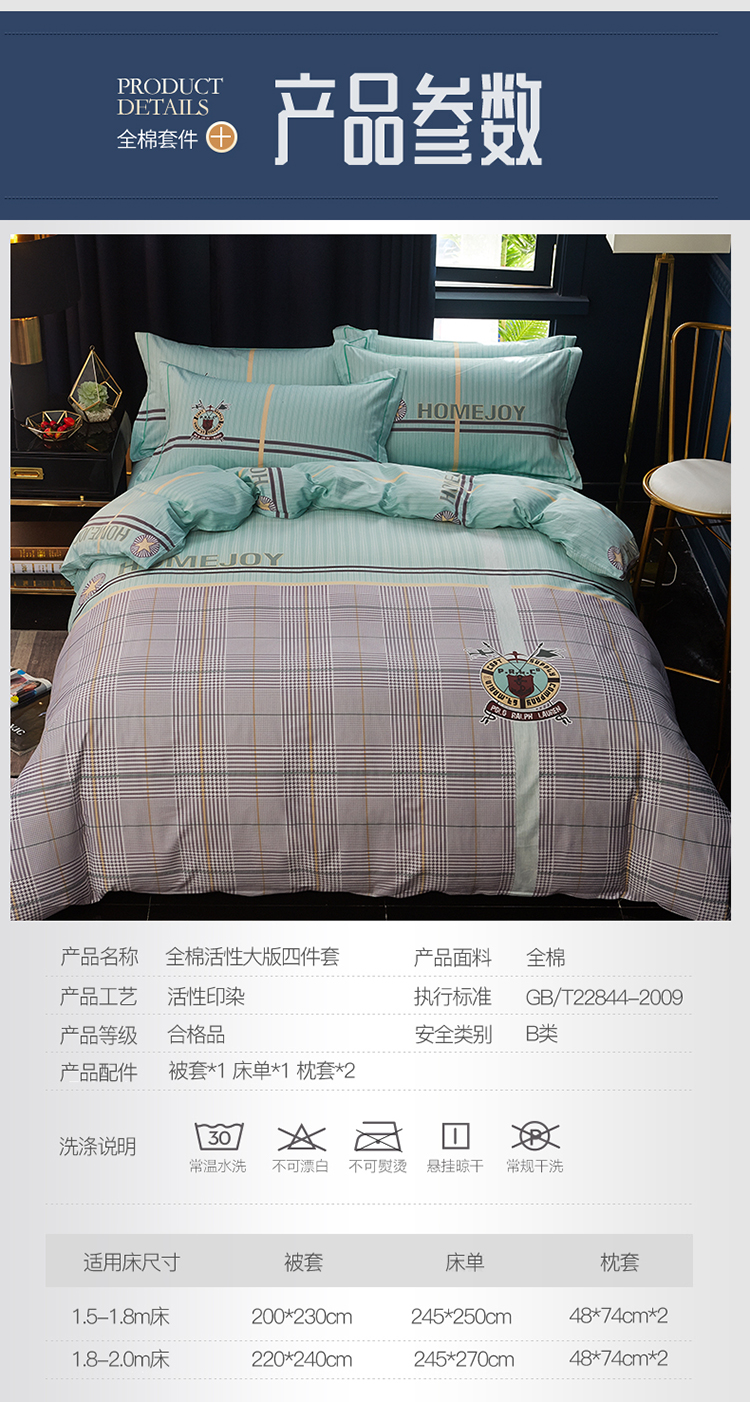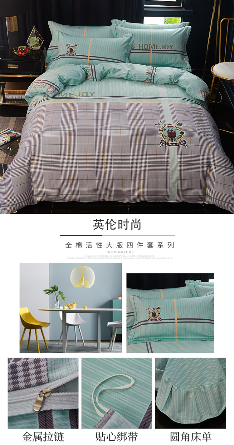 商品名称:雲归梦 2019全棉活性大版简约卡通风格四件套 英伦时尚