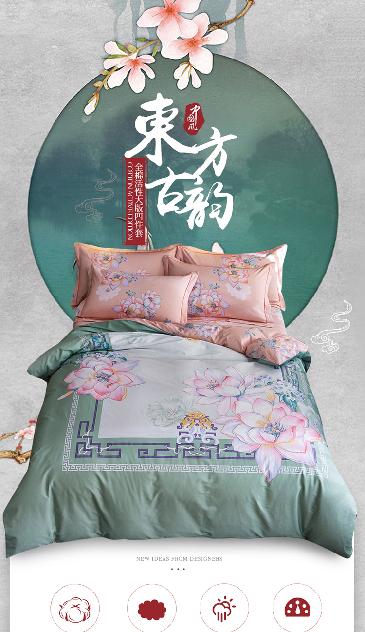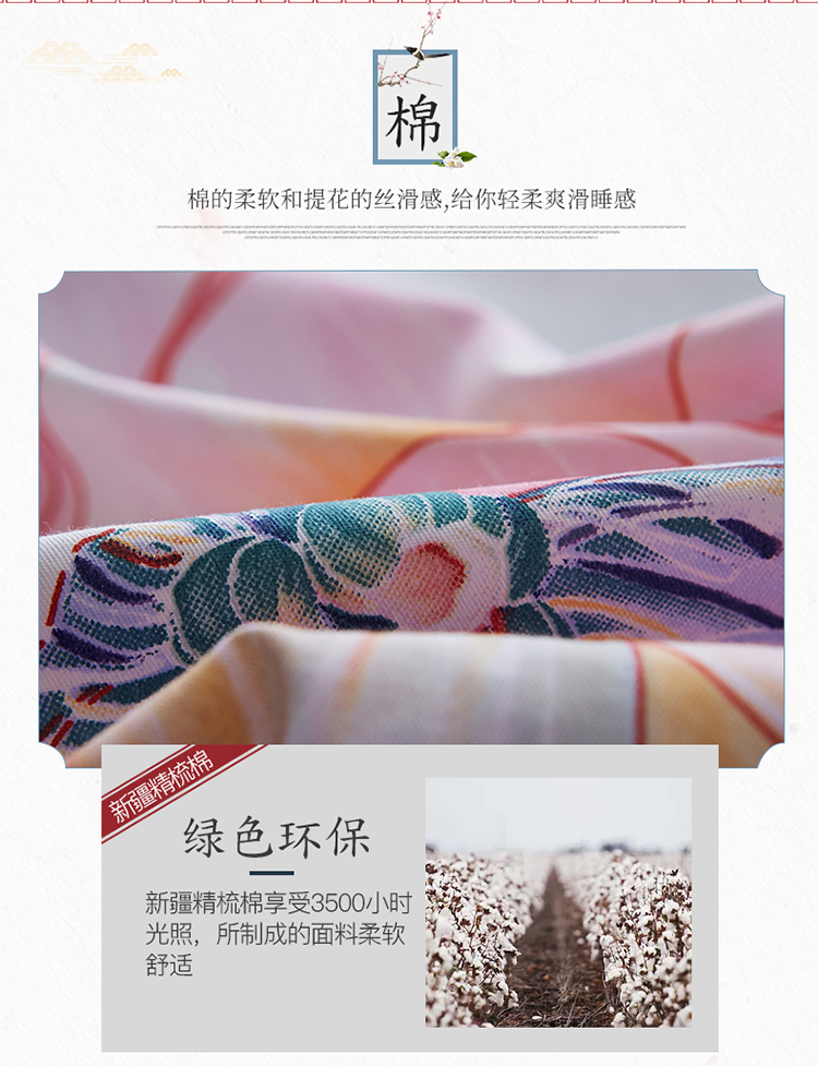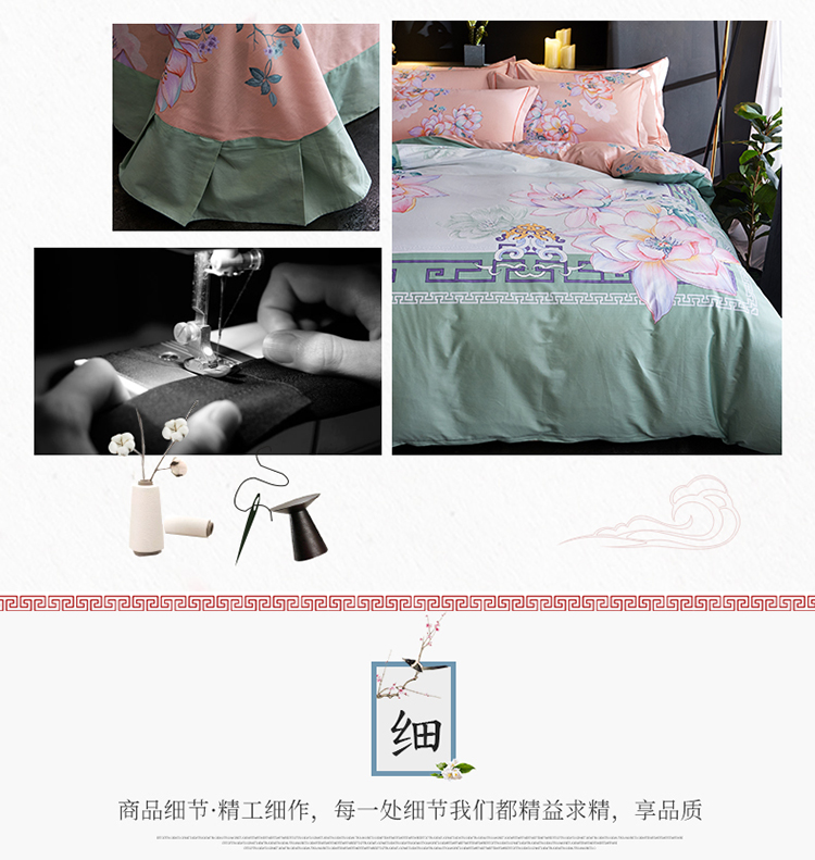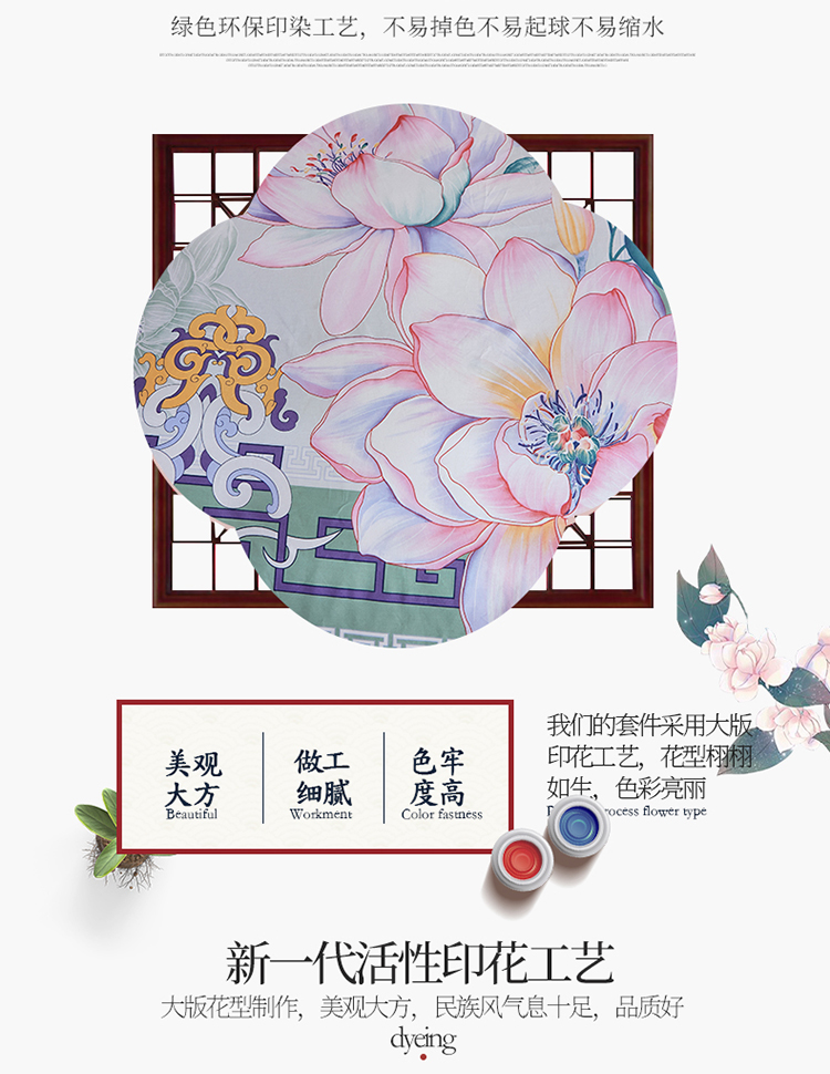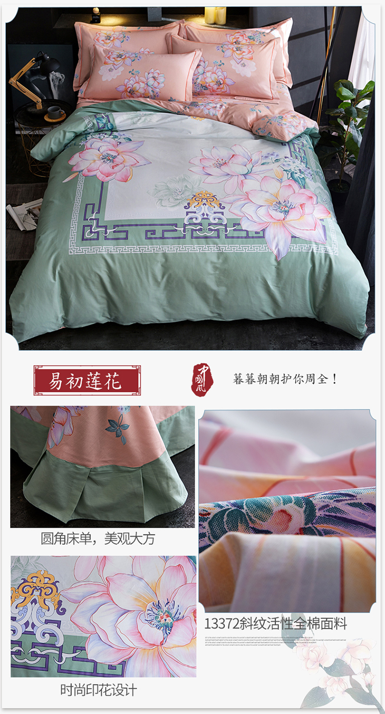商品名称:雲归梦 2019全棉活性大版中国风花卉四件套 易初莲花