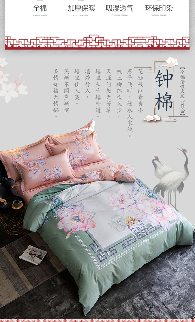 雲归梦 2019全棉活性大版中国风花卉四件套 易初莲花