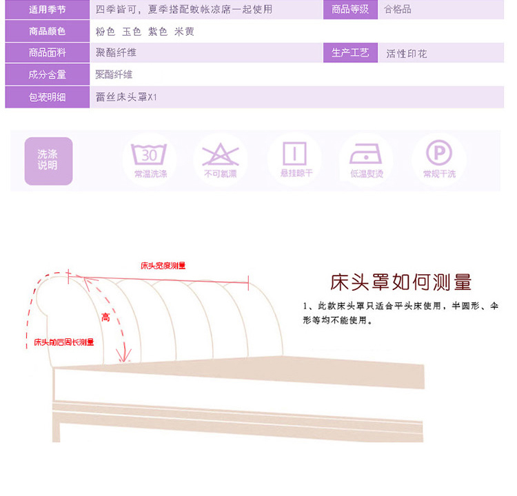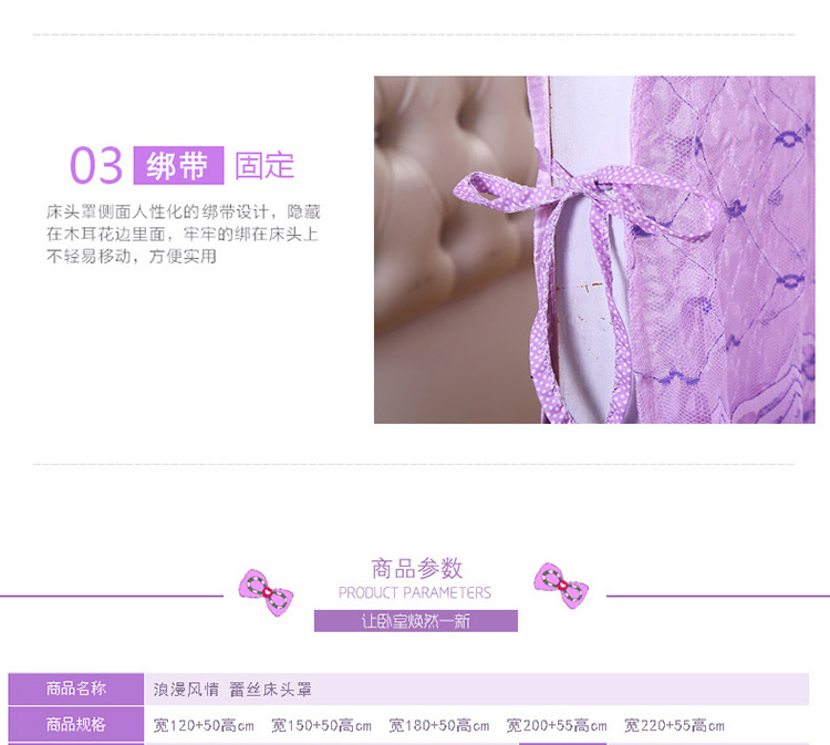 商品名称:(总)情恒家纺 2019蕾丝床头罩大靠背靠垫浪漫风情系列