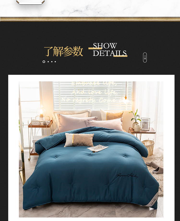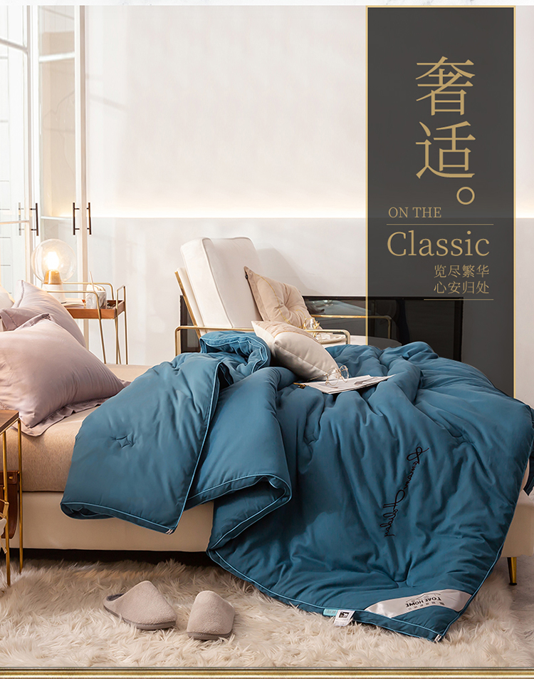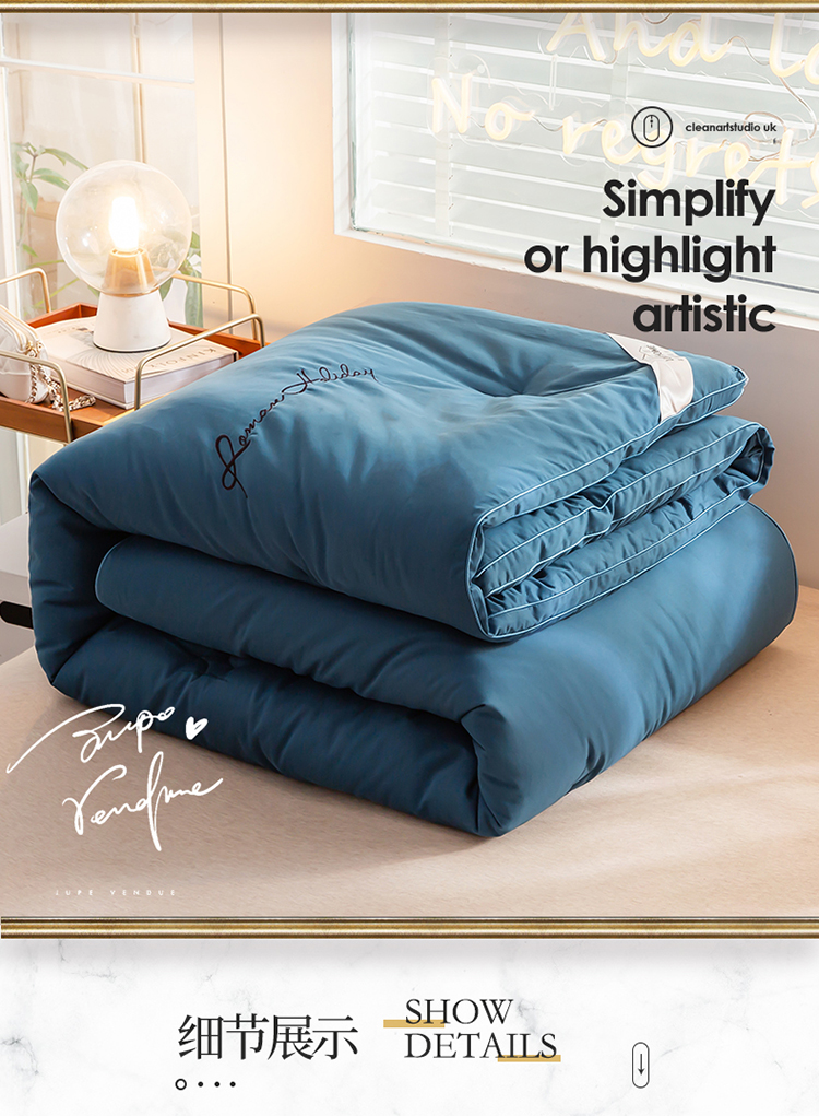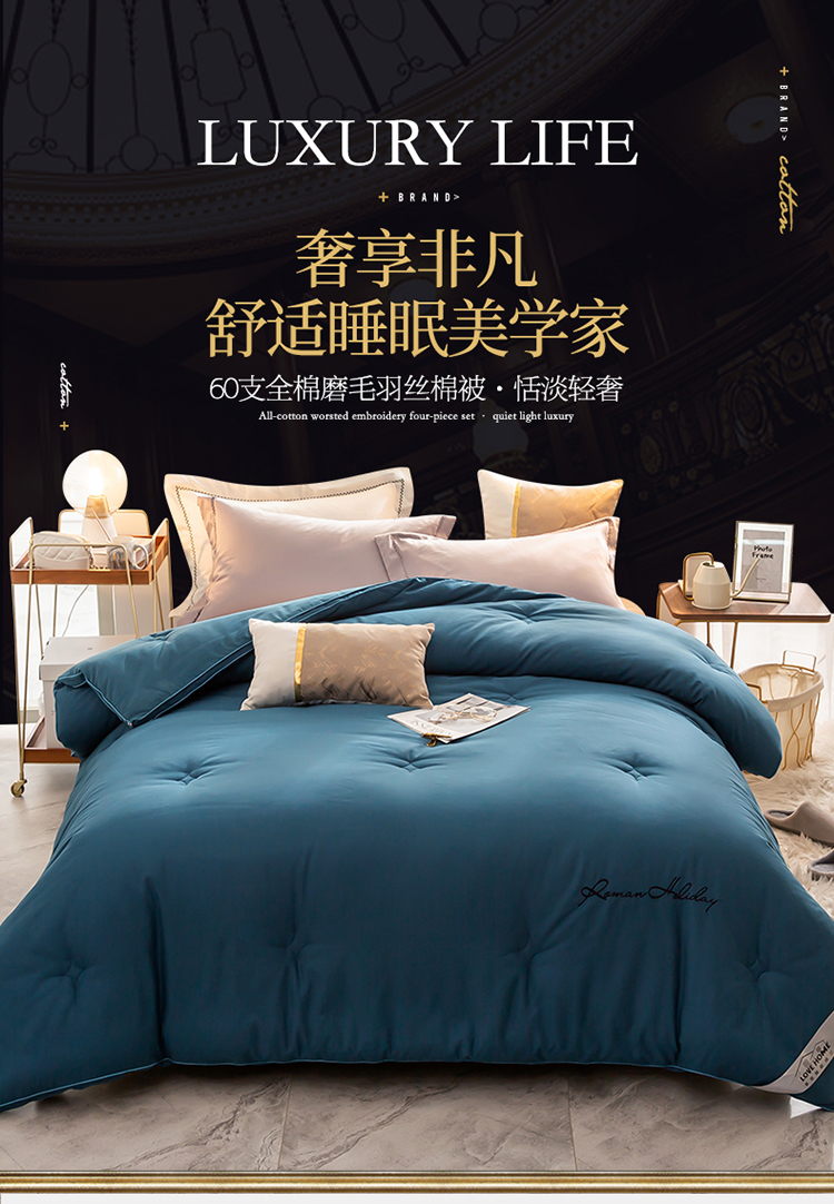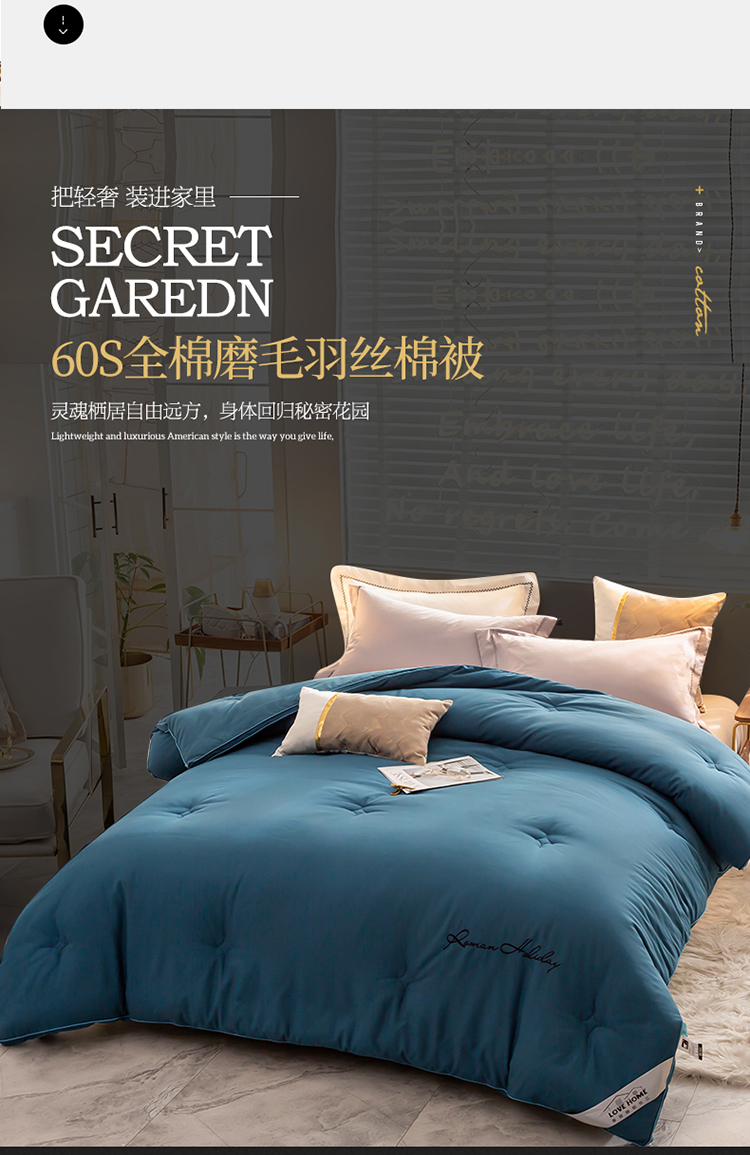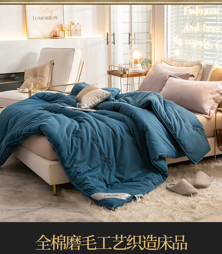 商品名称:头等舱 2019新款60全棉磨毛绣花冬被 依恋蓝