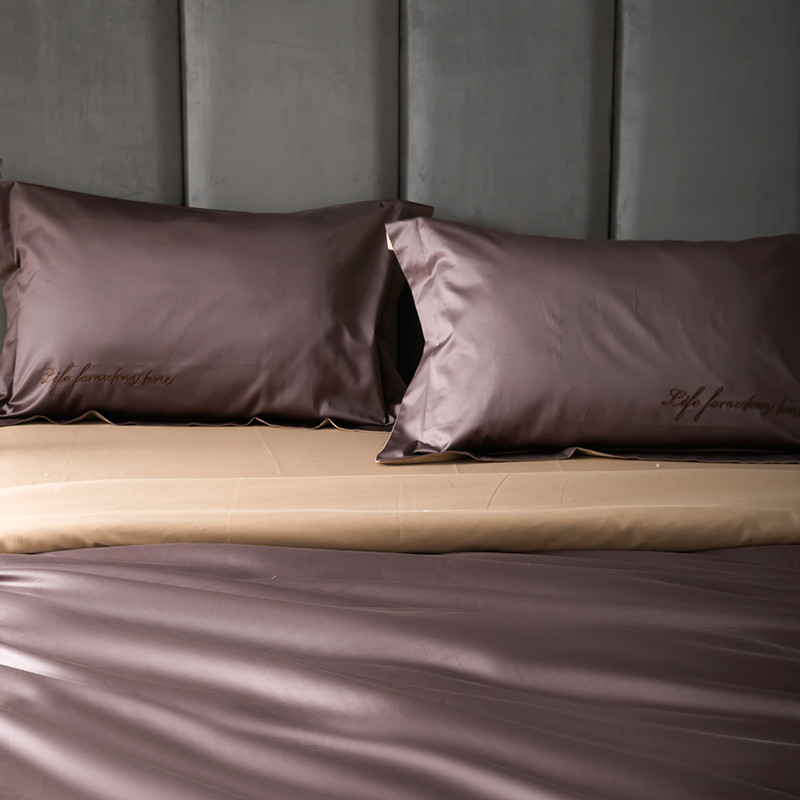 商品名称:太古汇 双股纯色双拼绣花宽边四件套 咖啡棕