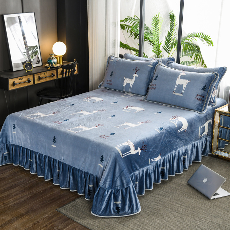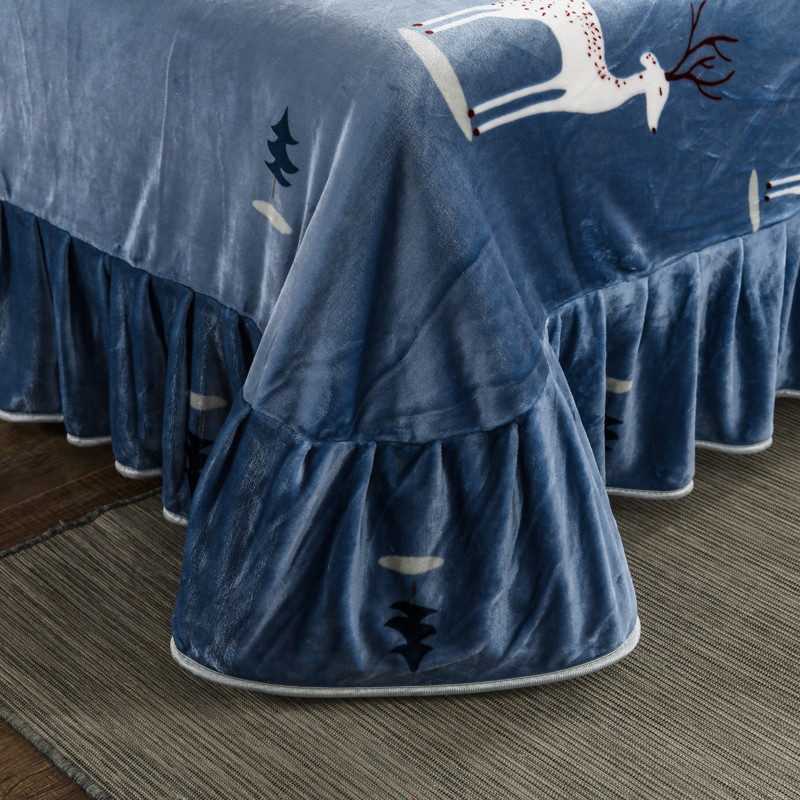 雨洋家纺 2025新款加厚金貂绒床裙床盖 神秘夜晚