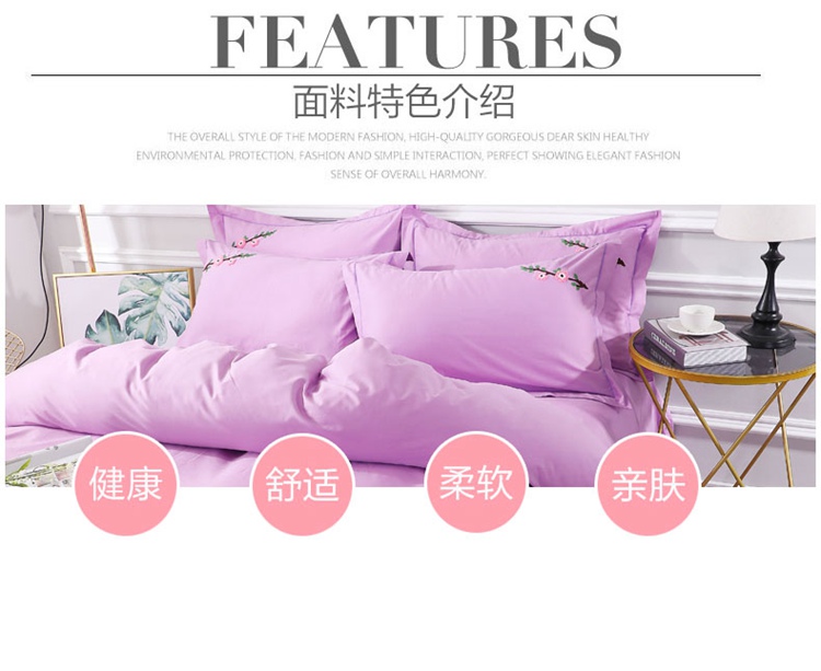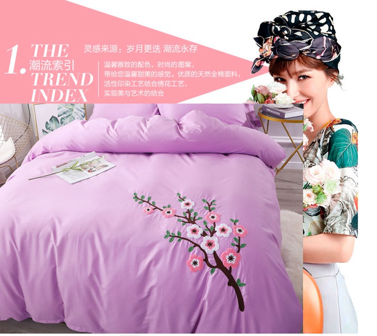 商品名称:13372田园风全棉毛巾绣四件套纯棉绣花全棉刺绣桃花朵朵紫色