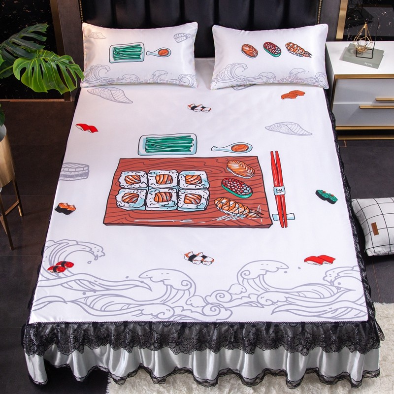 纽缦 2020新款冰丝大版床裙三件套 寿司宴