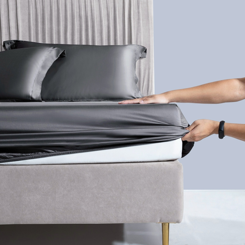 小米笠 2021新款60支长绒棉纯色床笠三件套床盖床单可定制四季款 深空灰