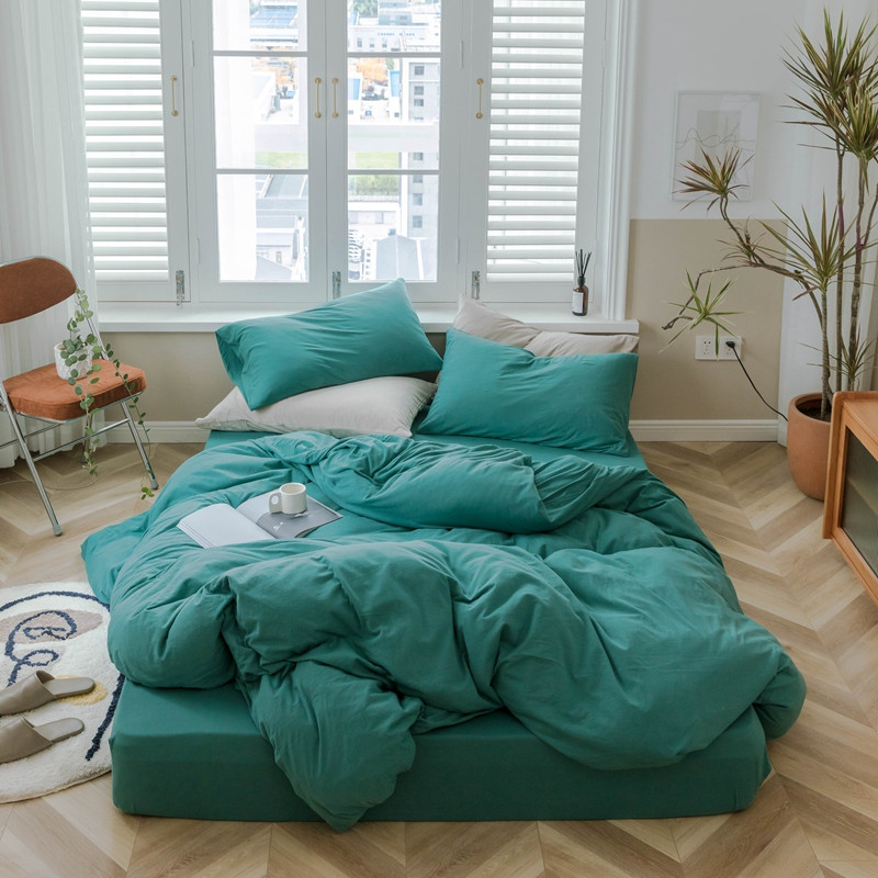 (总)华超针织 2021新款天竺棉千鸟格四件套,千鸟格豆沙,千鸟格海蓝,千鸟格姜黄,千鸟格墨绿,千鸟格藕色,千鸟格炭黑