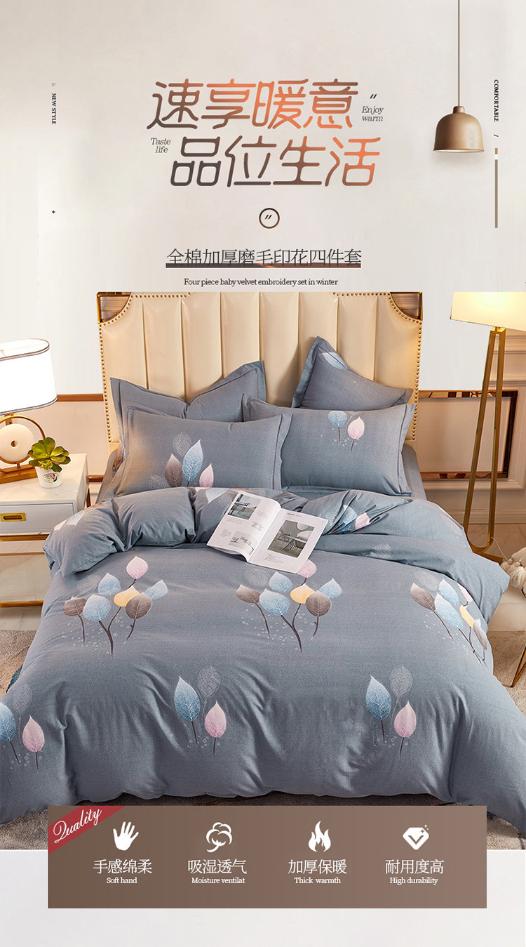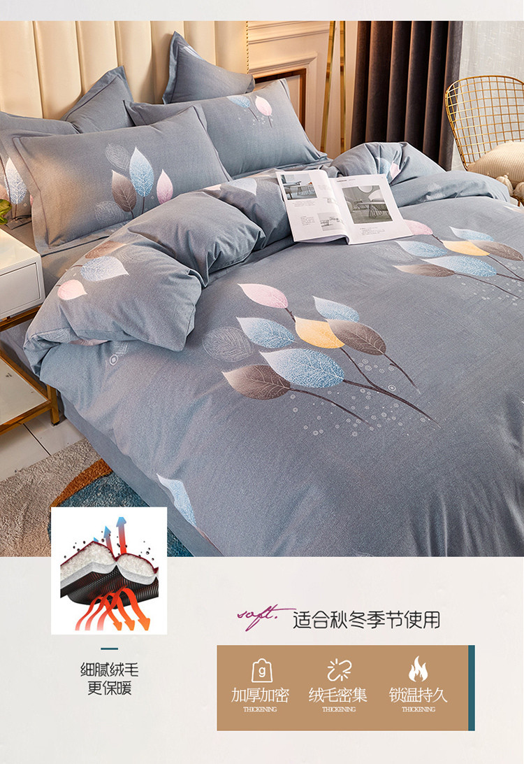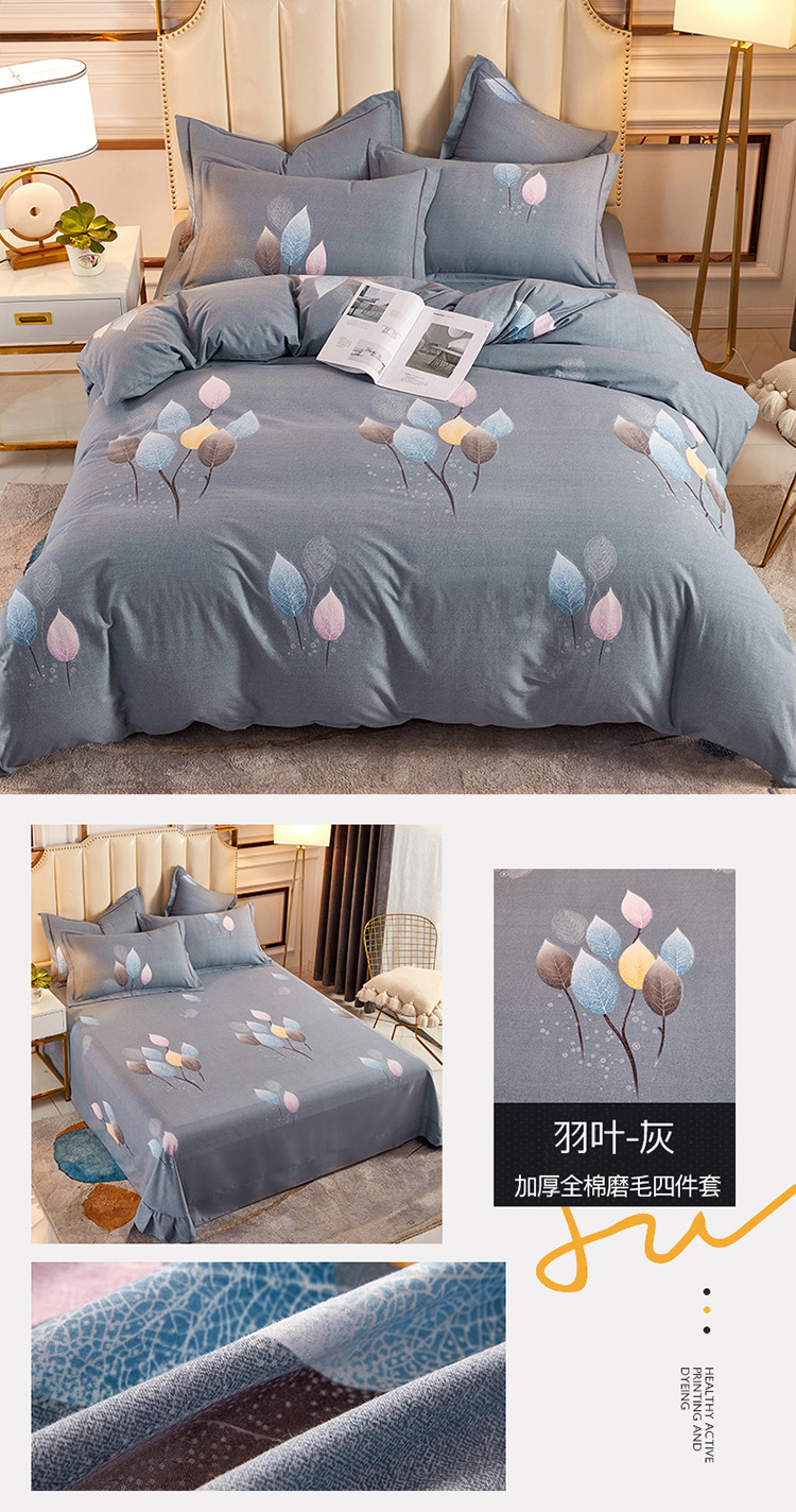 当前位置: 91家纺网 > 商品网购 > 床品套件 > 四件套 > 全棉普通四件套 > 雲归梦 2020新款全棉加厚磨毛四件套 羽叶-灰