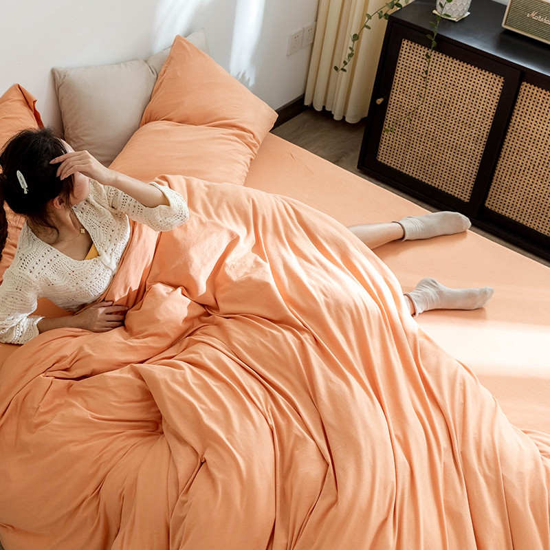(总)华超针织 2021新款天竺棉魔方格四件套,魔方格姜黄,魔方格奶茶,魔方格南瓜,魔方格深灰,魔方格紫粉