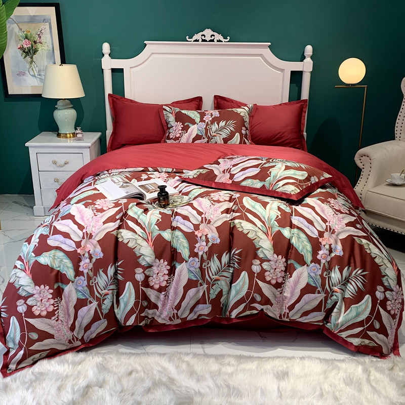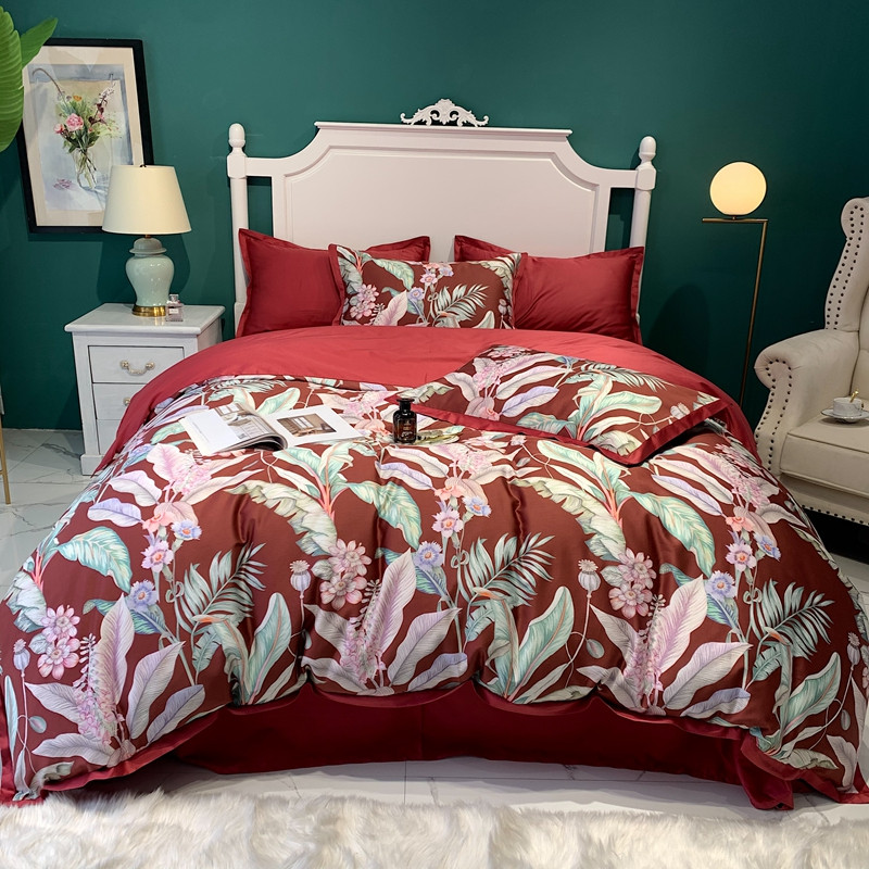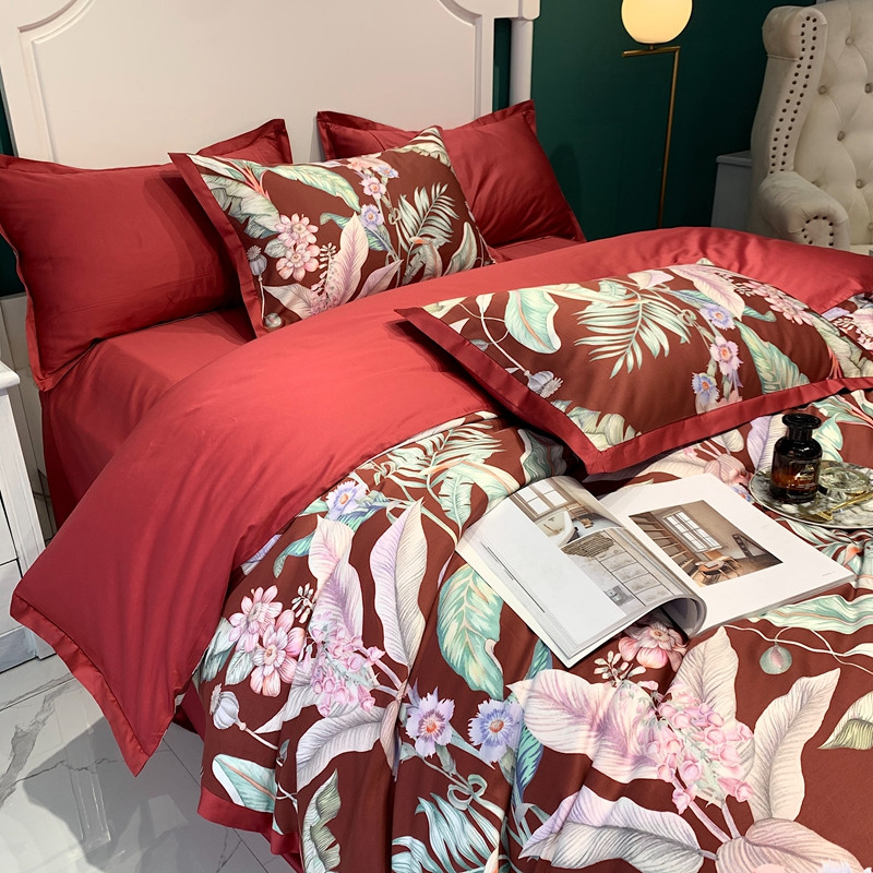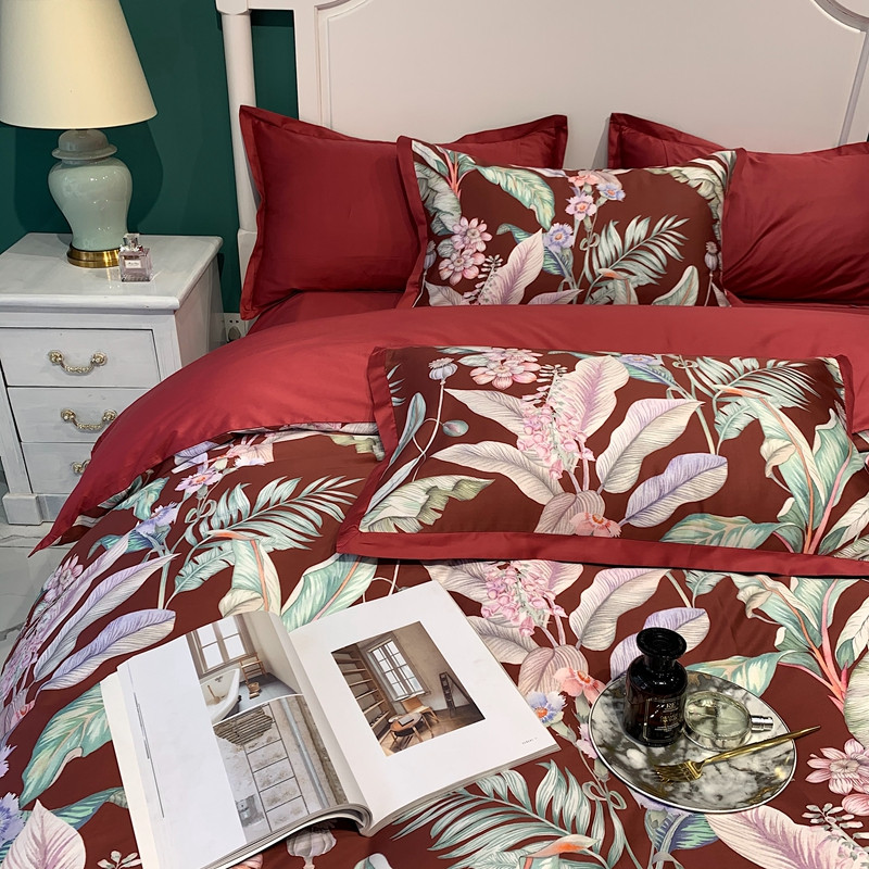 太古汇 2020新款60支数码印花小边款四件套林恩红