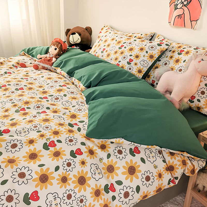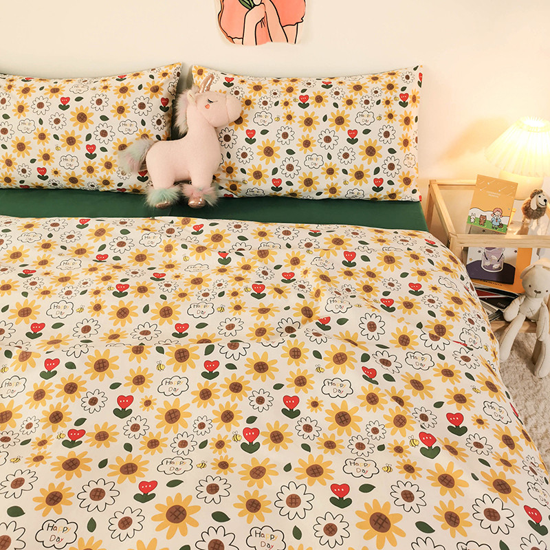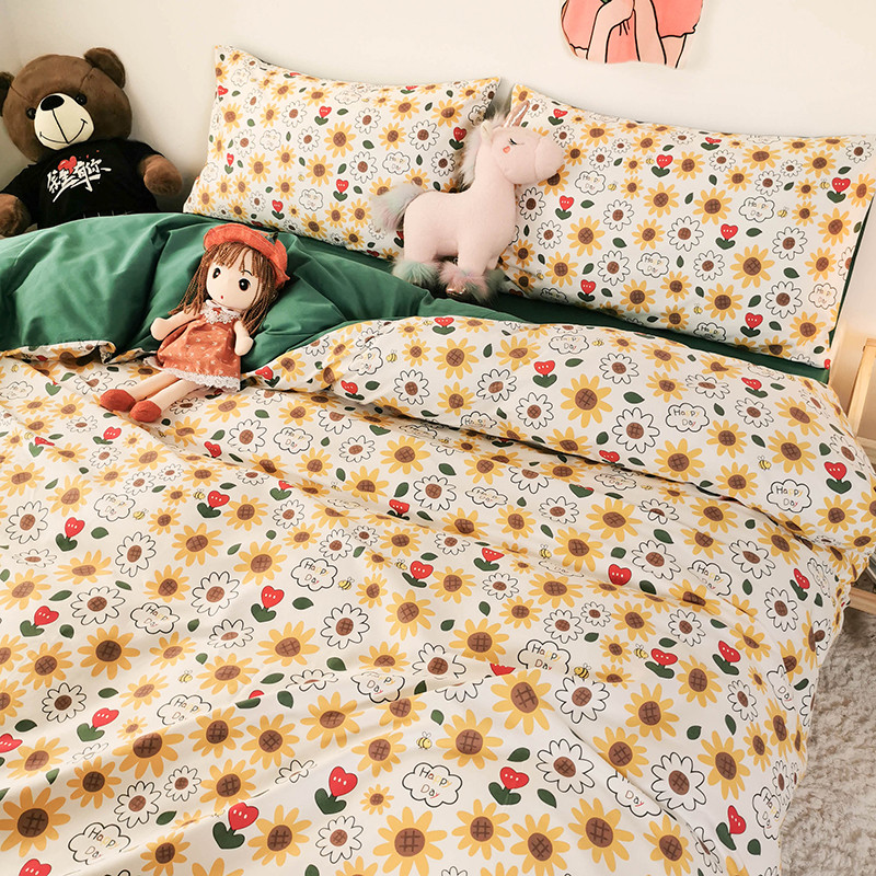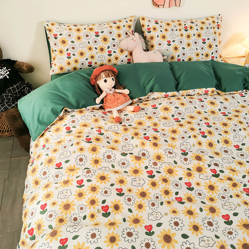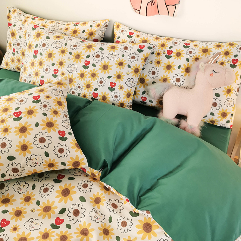 HL原创 2020新款13372全棉小清新四件套实拍图 葵花籽